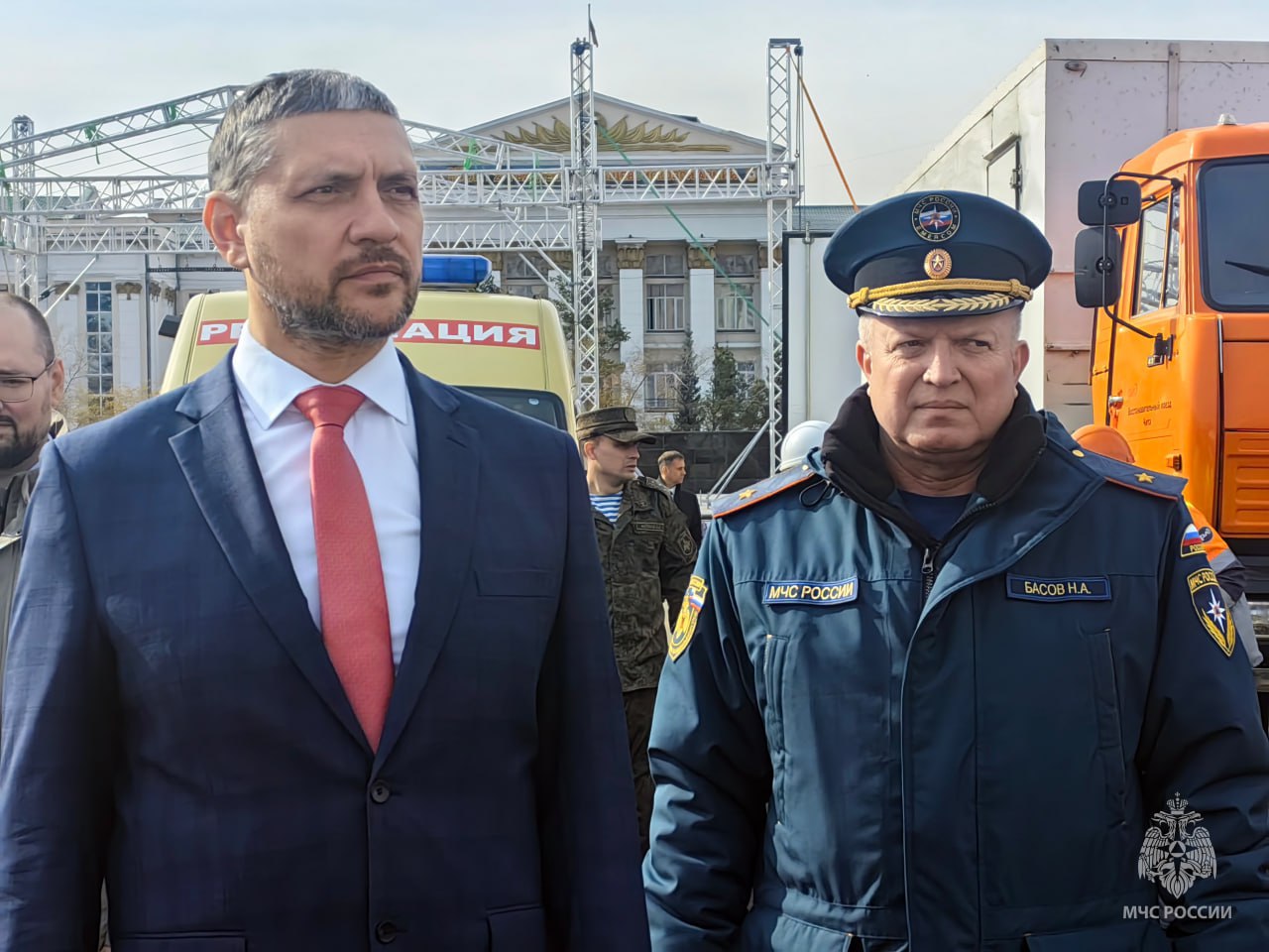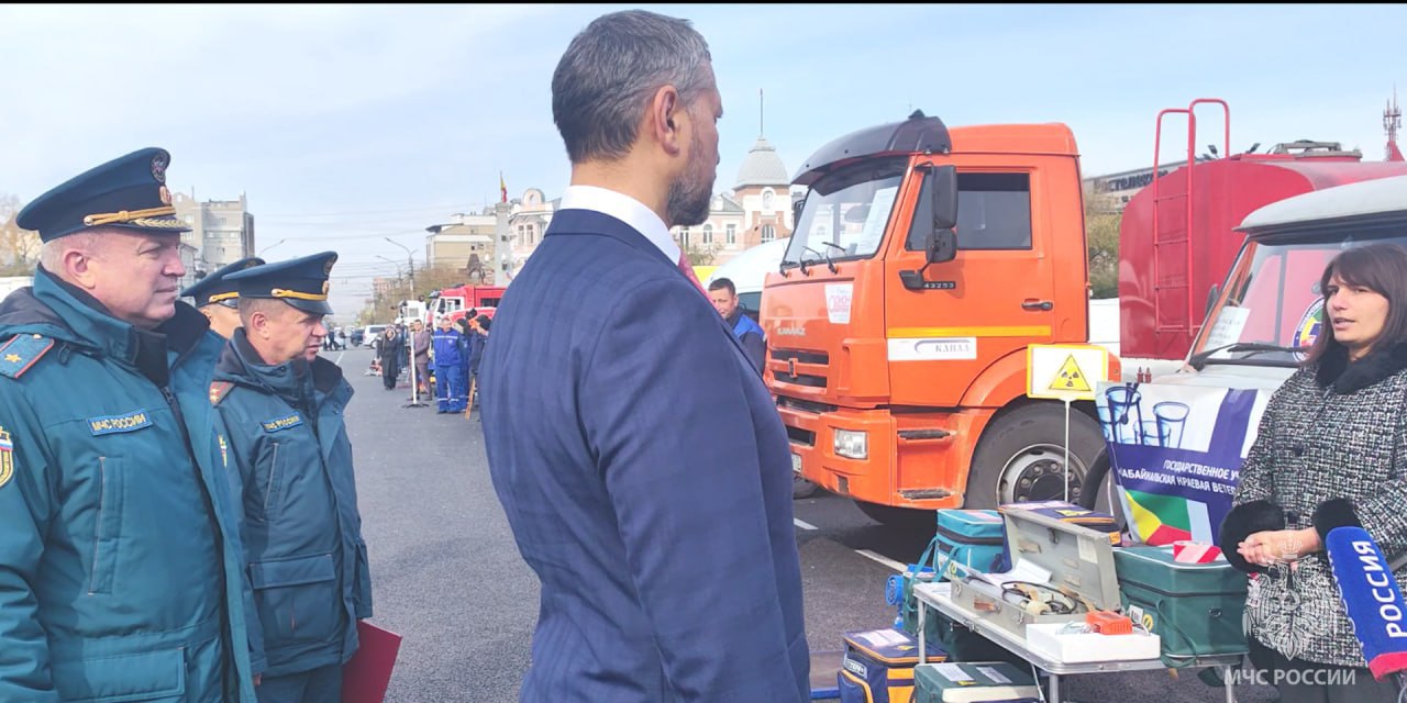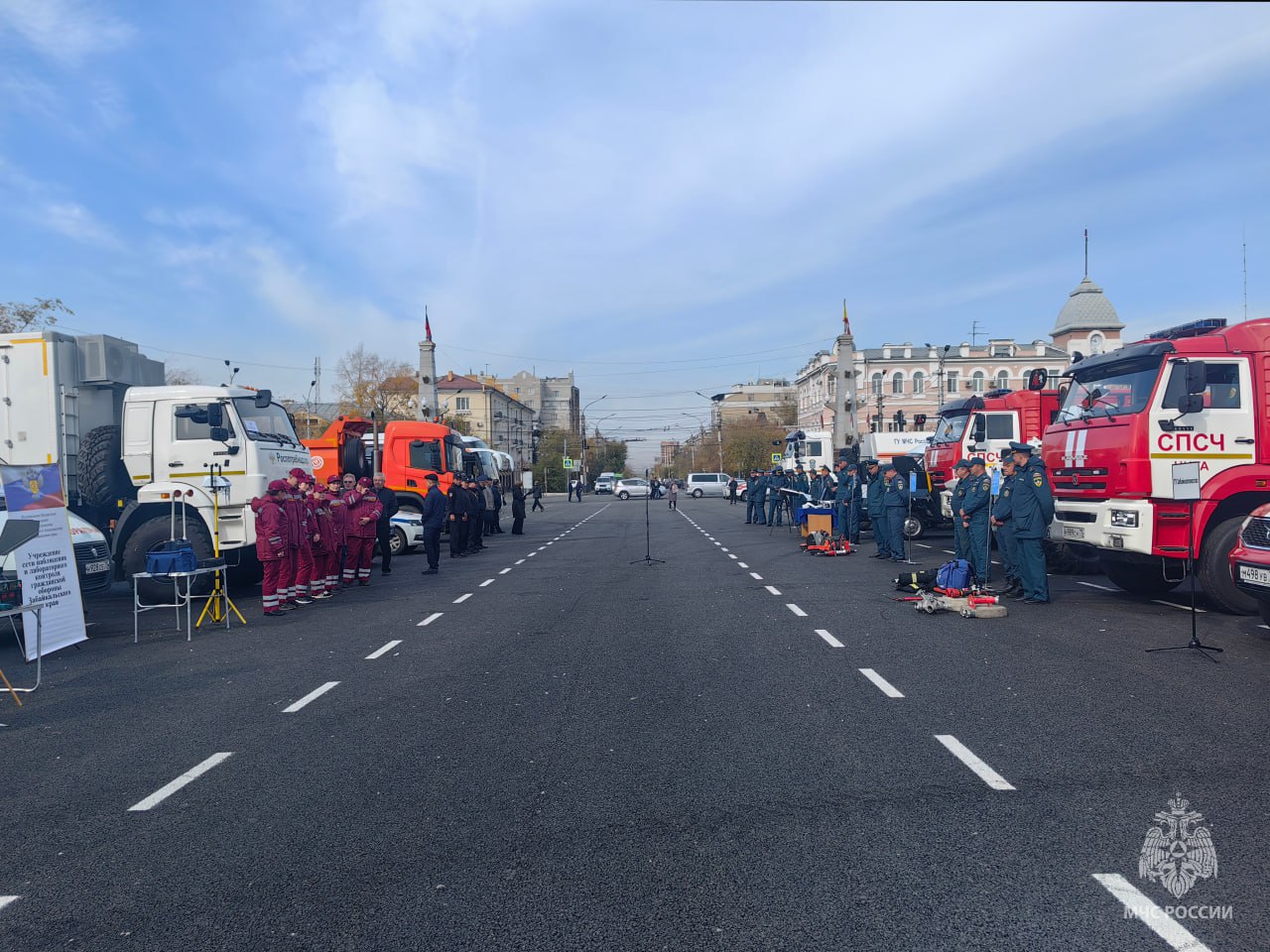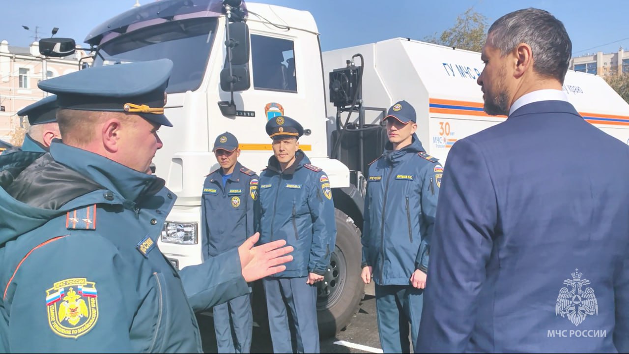 На площади Ленина в Чите губернатор и начальник ГУ МЧС России по Забайкальскому краю Николай Басов проверили технику и спецоборудование, которое используется при ликвидации ЧС.