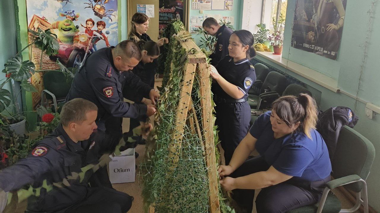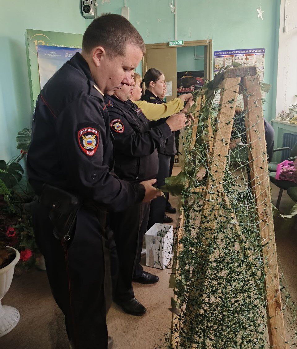 В настоящее время сотрудники полиции собрали денежные средства и приобрели материалы для маскировочной сети. Закуплено 180 метров основы и 2000 метров специальной ткани. В свободное от службы время сотрудники полиции вместе с районным отделением фонда «Защитники Отечества» и членом Общественного совета при МО МВД России «Балейский» Надеждой Легковой собираются на площадке местного кинотеатра, нарезают ткань и плетут маскировочную сеть.