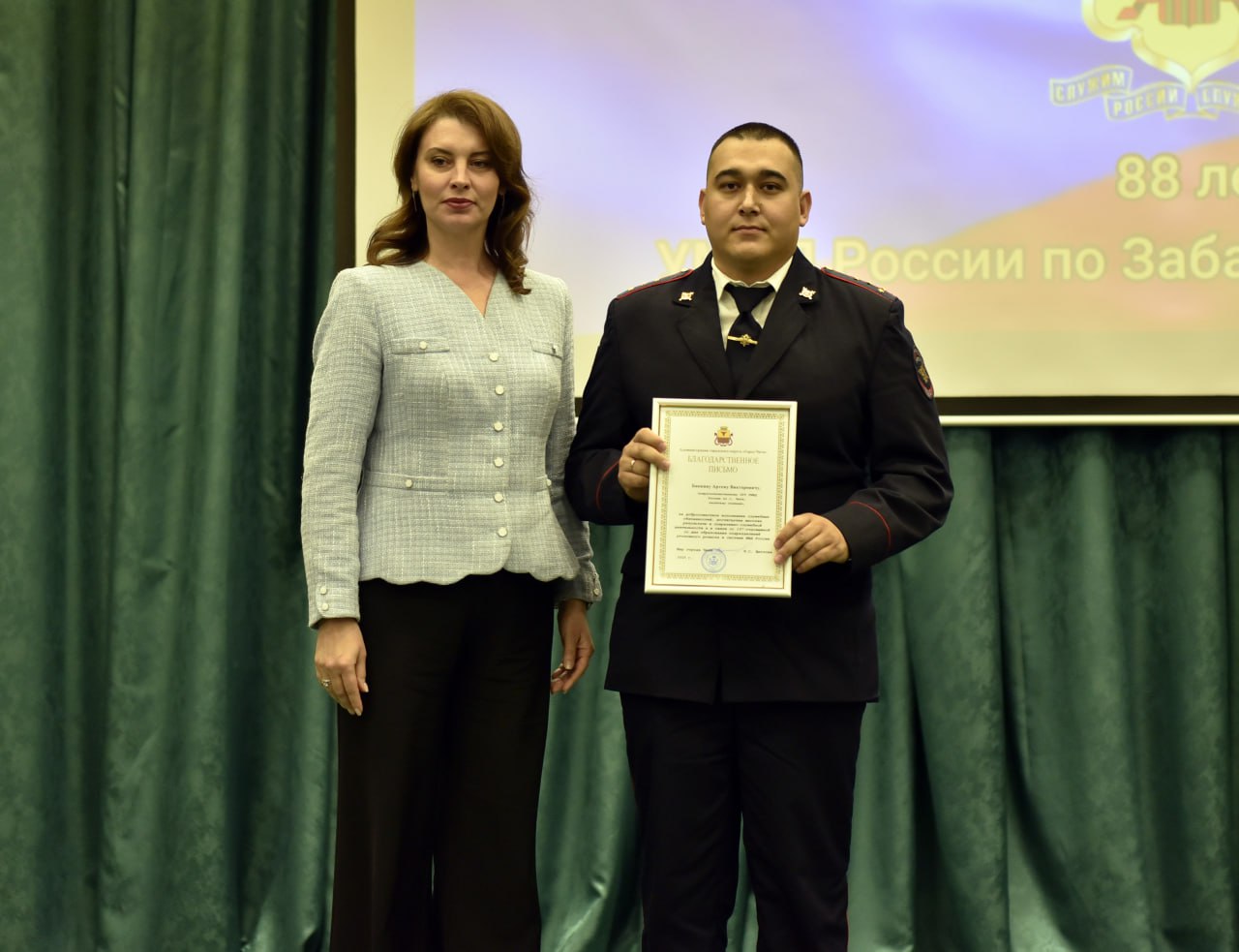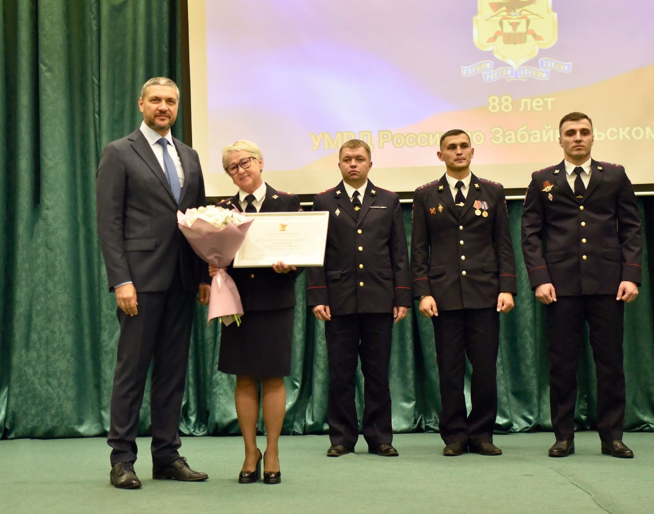 Присутствующий на торжественном мероприятии Губернатор Забайкальского края Александр Осипов отметил, что сотрудники полиции выполняют одну из самых сложных задач системе государственной власти – делают жизнь граждан безопасной. Александр Михайлович от лица всех жителей региона поблагодарил сотрудников за каждодневный непростой, но такой важный труд.В ознаменование 88-ой годовщины образования УМВД руководителям и сотрудникам подразделений и терорганов вручены награды.
