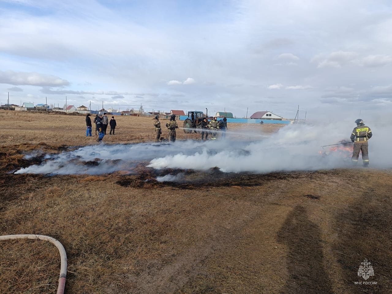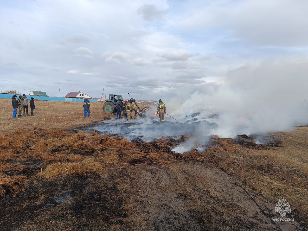 Несмотря на то, что активный период заготовки сена и кормов для животных уже завершен, возгорания сена являются актуальным риском в осенний период. Один из таких пожаров произошел сегодня днем в Краснокаменске.