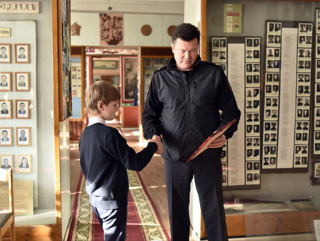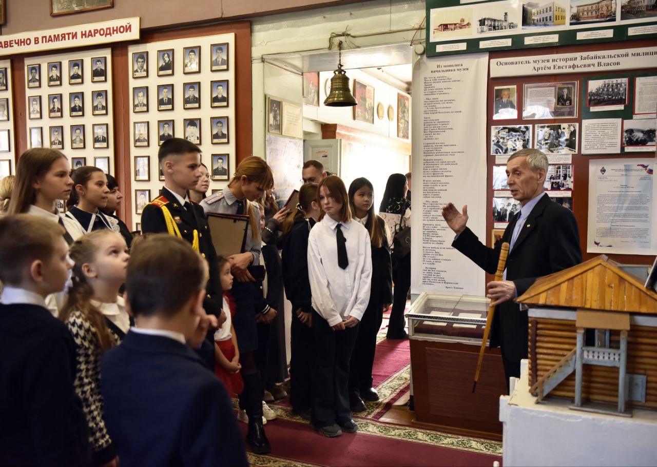 После церемонии награждения юные художники и их родители окунулись в историю полиции Забайкалья. Директор музея УМВД России по Забайкальскому краю Геннадий Жеребцов провел для них познавательную экскурсию