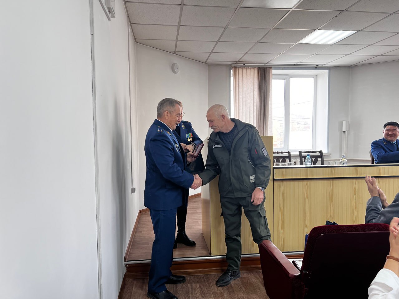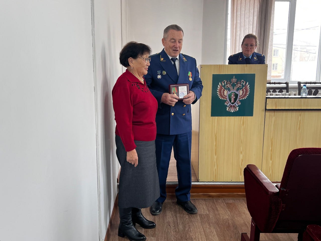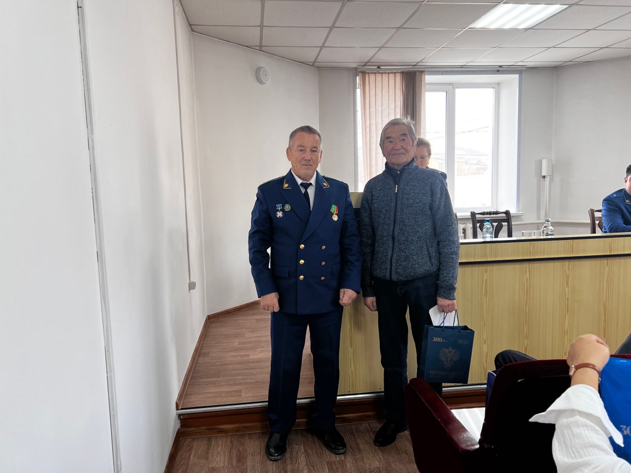 Вчера представители общественной организации ветеранов и пенсионеров прокуратуры Забайкальского края и отдела кадров регионального надзорного ведомства в ходе рабочей поездки в Агинский Бурятский округ в помещении прокуратуры Агинского района вручили юбилейные медали пенсионерам – Дашиниме Аюрову, Елене Батоболотовой, Римме Батомункуевой, Борису Баторову, Алексею Петрову, Бальжиме Цымпиловой и Дамдину Цырендоржиеву.