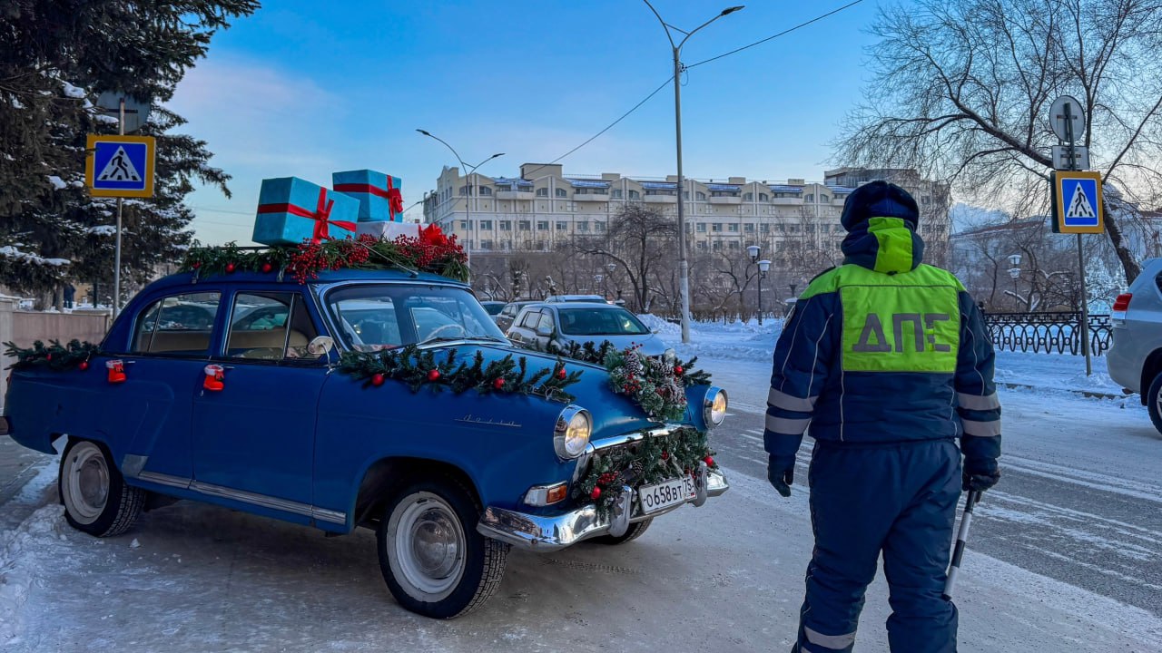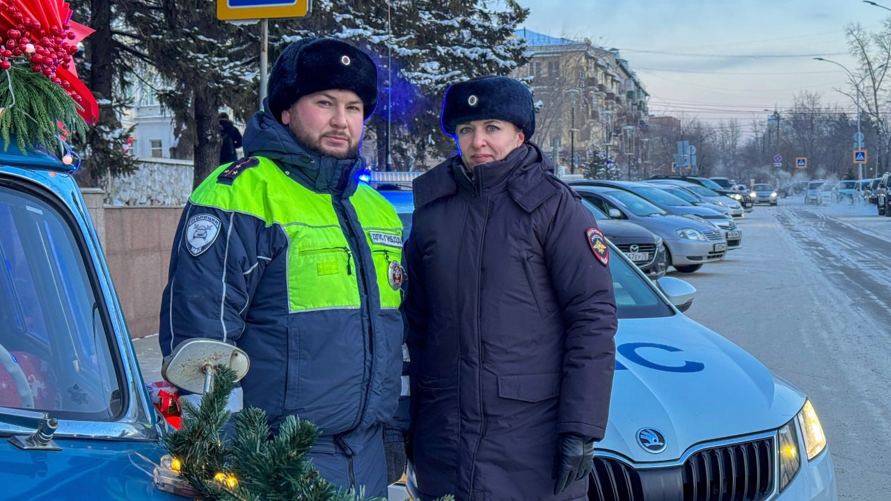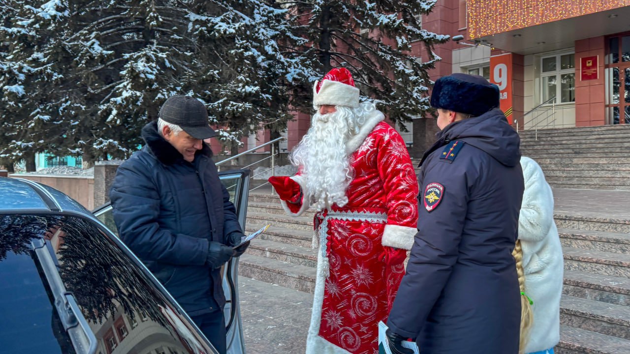 «Праздничный патруль» вышел на дороги Читы: сотрудники Госавтоинспекции и Дед Мороз со Снегурочкой поздравили автолюбителей с наступающим Новым годом