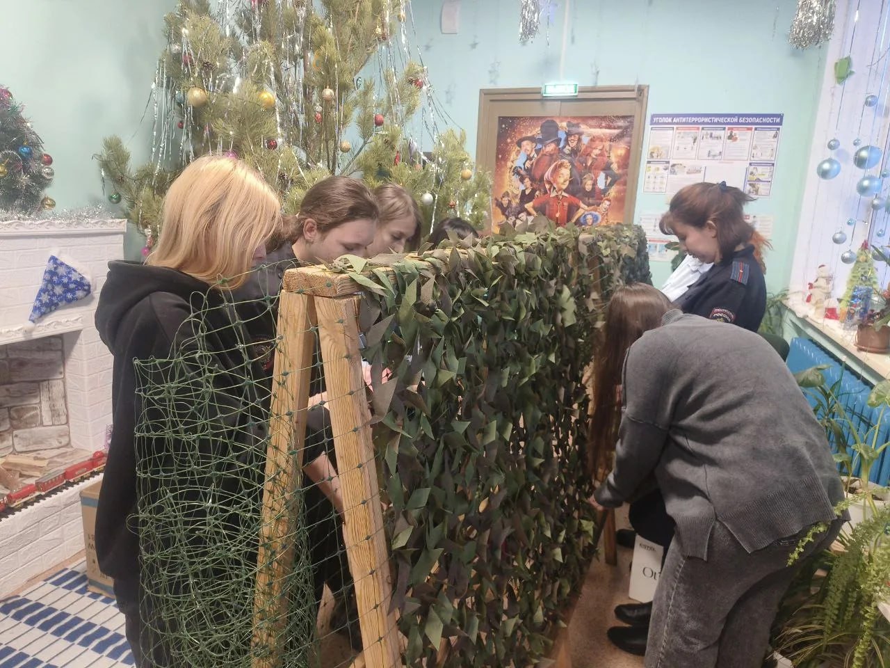 Вместе с волонтерами отряда «Пчелки» в городском кинотеатре «Космос» полицейские в свободное от службы время, даже в предновогодние дни, плетут маскировочные сети, которые также отправляются в зону проведения специальной военной операции. Руками волонтеров и полицейских сплетено уже десятки сетей, защищающих забайкальцев и технику на фронте.