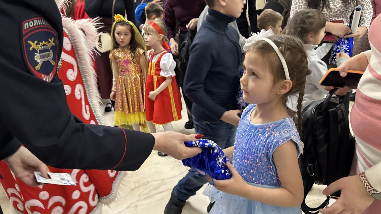 Сотрудники дорожной полиции региона вместе со сказочными персонажами вручили детям подарки и пожелали им счастливого Нового года.