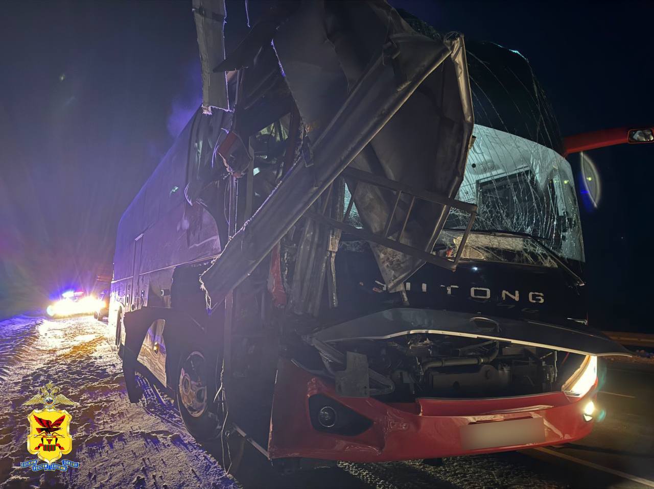 Предварительно, большегруз стоял вдоль обочины из – за технической неисправности, обозначенный необходимыми дорожными знаками. В автобусе перевозились пассажиры, следующие на работу в Амурскую область. Их количество устанавливается. Два пассажира «Етонга» были доставлены в лечебное учреждение. Один из них в последующем скончался.