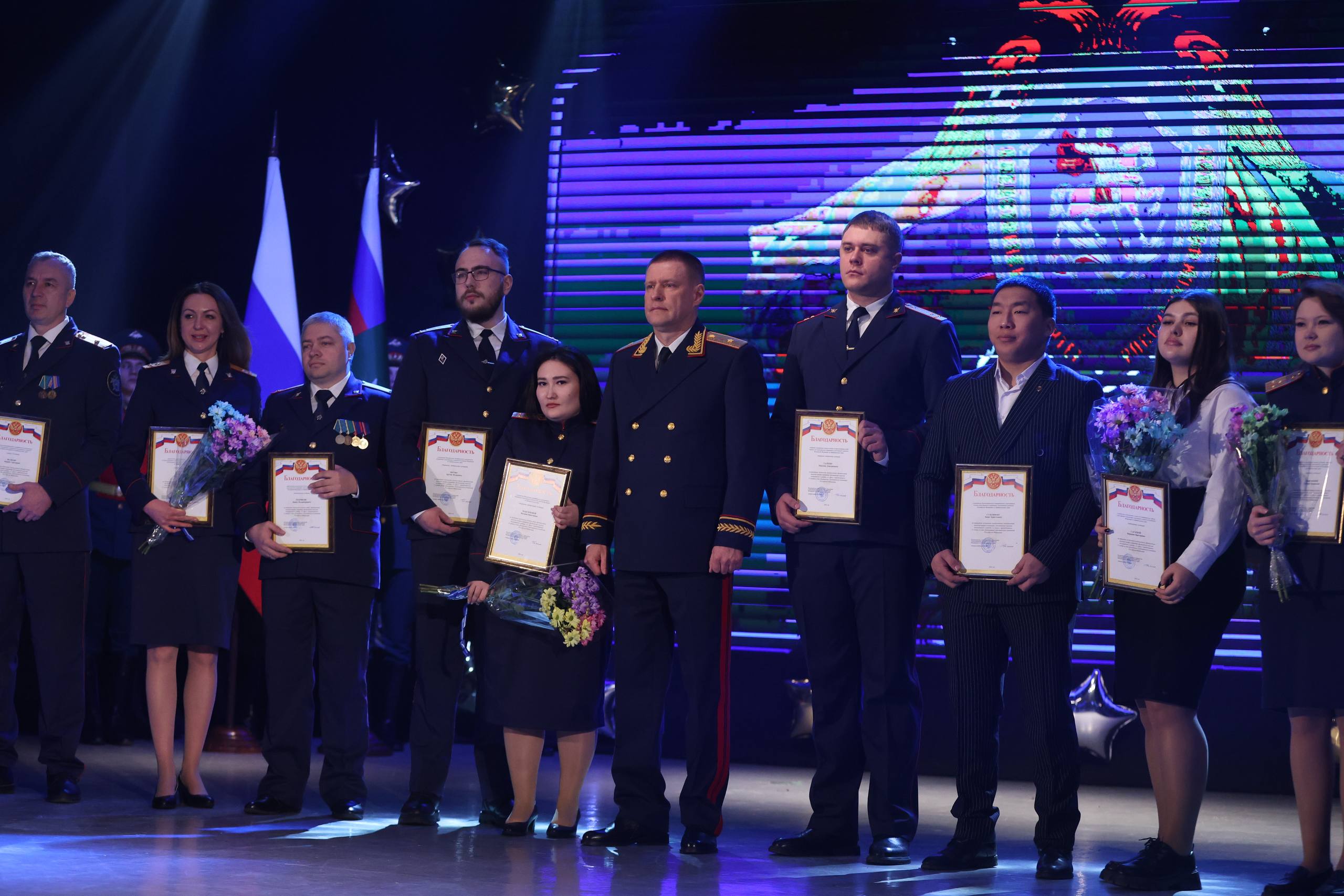 Сотрудникам, добившимся отличных результатов, вручили государственные и ведомственные награды, почётные грамоты. Нескольким следователям торжественно вручили погоны в связи с присвоением специальных званий.