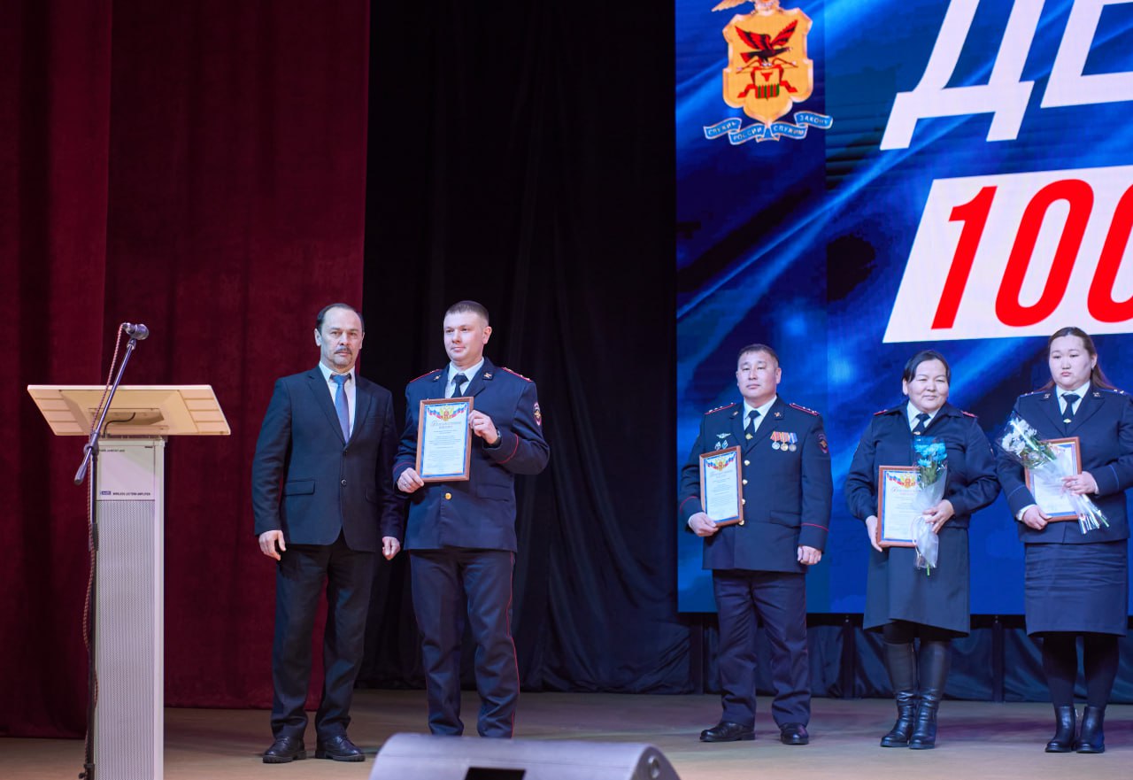 Празднование векового юбилея с сотрудниками разделил начальник регионального УМВД Вячеслав Еговцев. Генерал-майор полиции вручил отличившимся стражам порядка почетные грамоты и благодарственные письма, отметив, что сотрудники территориального органа ни раз доказывали свой профессионализм, становившись лучшими в конкурсах профессионального мастерства среди участковых уполномоченных и занимали призовые места, в том числе первое, в соревновании среди районных отделов полицииВместе с сотрудниками на сцену в праздничный день вышли и их дети. Накануне 100-летнего юбилея отдела они изобразили в рисунках своих мам и пап, защищающих граждан от преступников. Начальник ОМВД Баир Цыцыков вручил подарки маленьким участникам творческого конкурса
