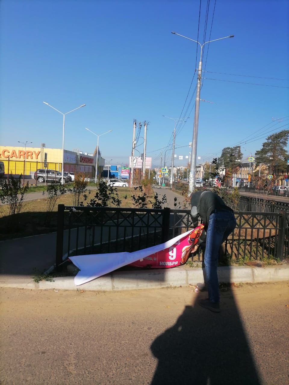 Специалисты контрольной инспекции разыскали администратора выставки, приехавшего в Читу из другого города, и составили на него 9 протоколов по статье 18.6 Закона Забайкальского края «Об административных правонарушениях» (Нарушение требований к размещению информационных конструкций и некапитальных объектов на территориях общего пользования).