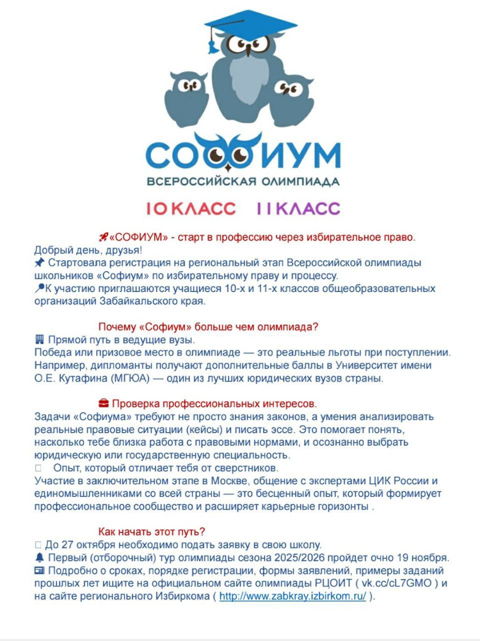 Избирательная комиссия Забайкальского края сообщает о начале подготовки к проведению регионального этапа Всероссийской олимпиады по вопросам избирательного права и избирательного процесса среди учащихся 10-х и 11-х классов общеобразовательных школ.
