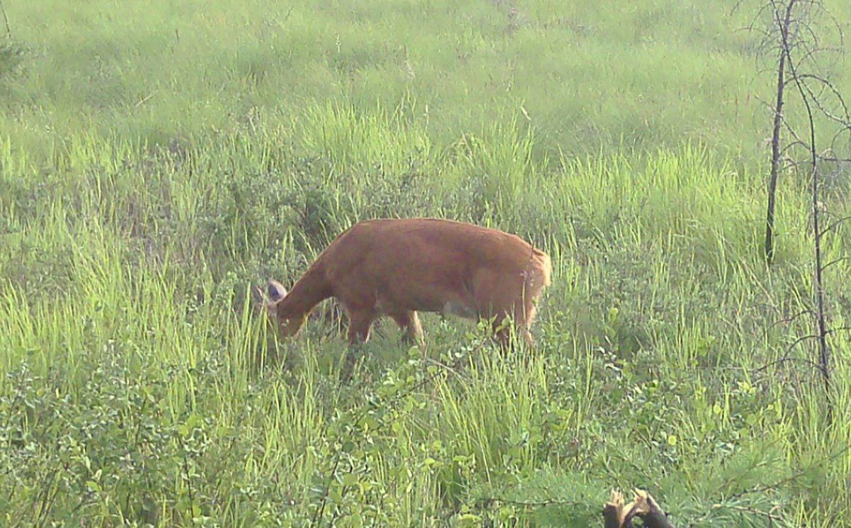 Любопытный олененок мирно щипал траву, а молодая косуля лакомилась листьями кустарников. На снимки также попали тетерева, внимательно осматривающие территорию перед полетом и вороны, уверенно прогуливающиеся среди деревьев.