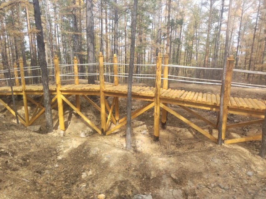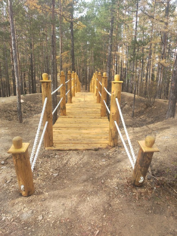 Для более комфортных туристических прогулок по тропе уже обустроены деревянные дорожки, возведен деревянный мост, которые позволит беспрепятственно пройти через овраг.