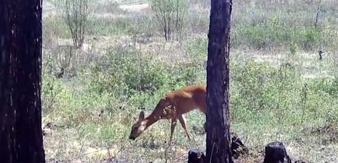 Видео размещено в телеграм-канале регионального ведомства. На нем видно, как самка косули увлечена поеданием молодых листьев еще пока зеленых кустарников. С наступлением холодов рацион питания у животных поменяется.