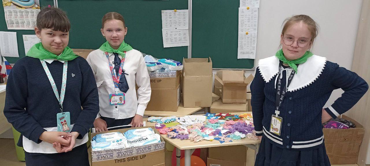 Вожатые школы №55 Наталья Николаевна Клочко и Татьяна Георгиевна Денисова организовали в школе акцию помощи участникам специальной военной операции. Они объединили усилия детских объединений «Импульс» и «Робби».