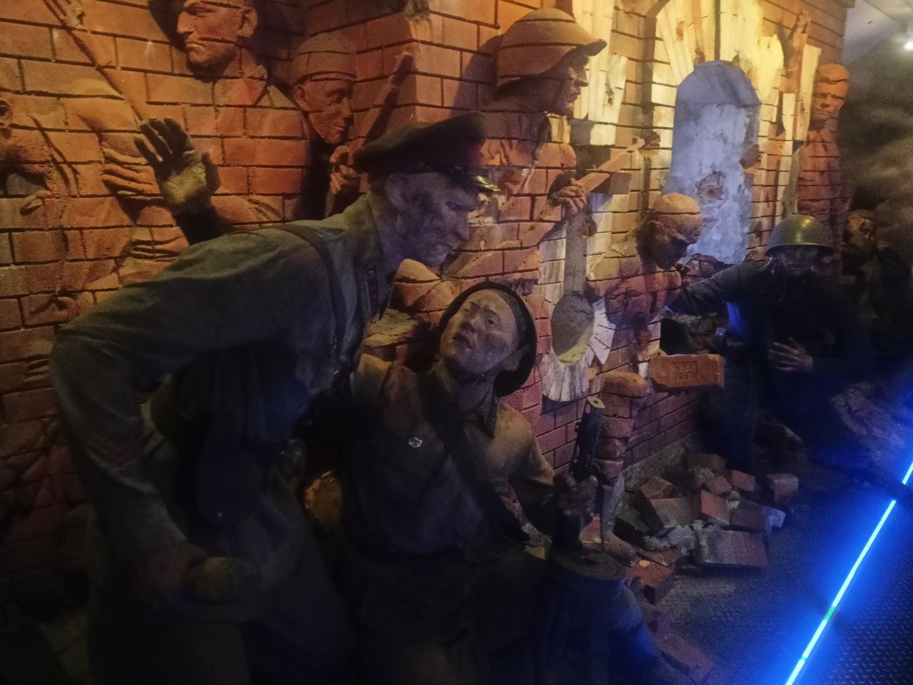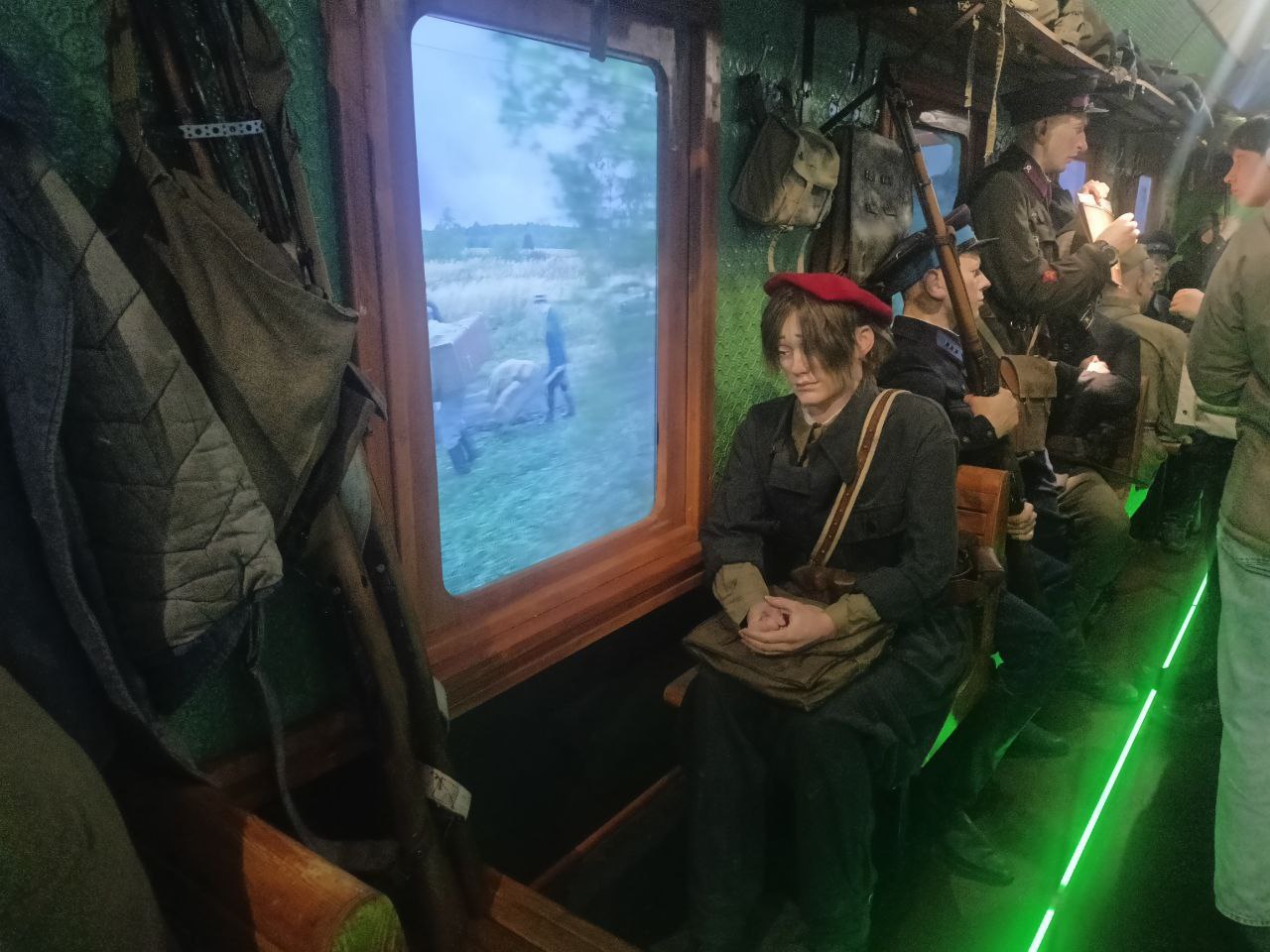 «Мы представляем первую в мире иммерсивную выставку. Преимущество ее в том, что мы путешествуем по всей России. Представляем тематические экспозиции через значимые события – такие, как оборона Брестской крепости или битва под Москвой. Есть VR-очки, через которые можно посмотреть, что происходит за пределами поезда. Скульптуры реалистичны, передают эмоции, в их создании принимало участие более 100 натурщиков», - сообщили организаторы.