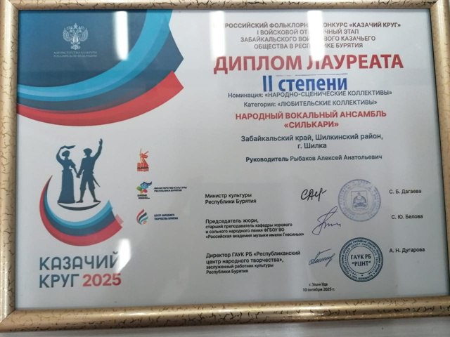Народный вокальный ансамбль «Силькари» из Шилки стал лауреатом второй степени Российского фольклорного конкурса «Казачий круг» в Улан-Удэ