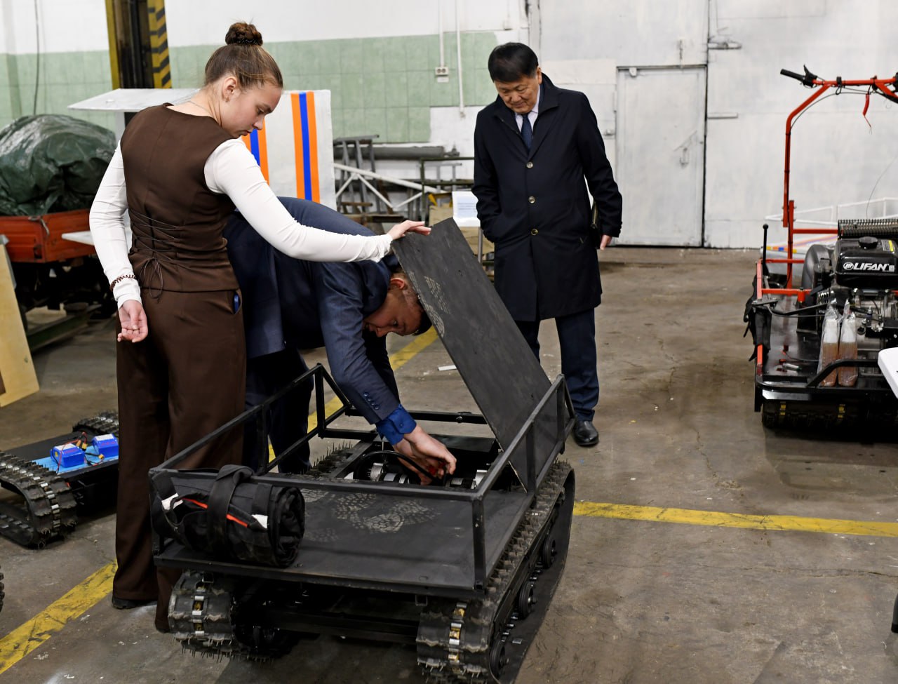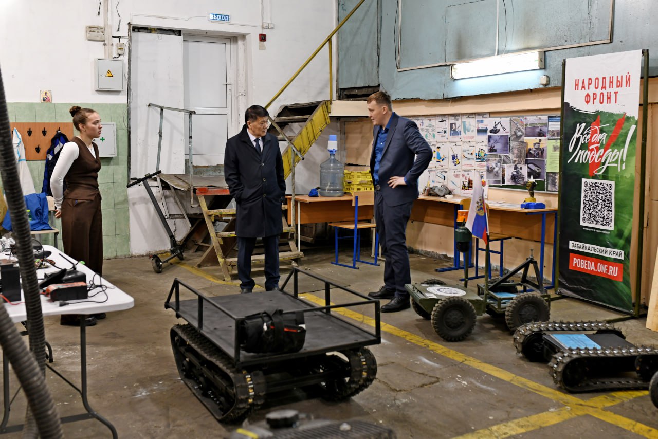Студенты ЗабГУ продемонстрировали председателю Заксобрания Кон Ен Хва свою новую разработку – беспилотную наземную универсальную платформу для доставки грузов.