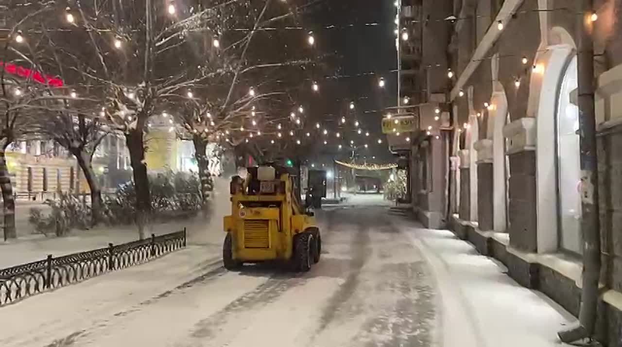 Снег укрывает нашу Читу!И у дорожных служб напряжённый график. Работают на механизированной подсыпке и подметании.Ночная смена в полном составе на дорогах города. 16 единиц техники.