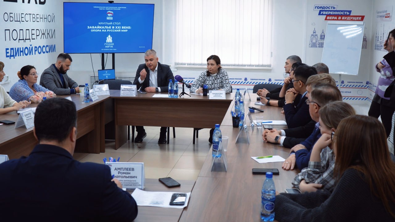 В Штабе общественной поддержки «Единой России» состоялся круглый стол на тему «Забайкалье в XXI веке: опора на Русский мир». Мероприятие стало платформой для обсуждения ключевых аспектов, связанных с предстоящим масштабным Русским форумом, который будет проходить 27–28 ноября.
