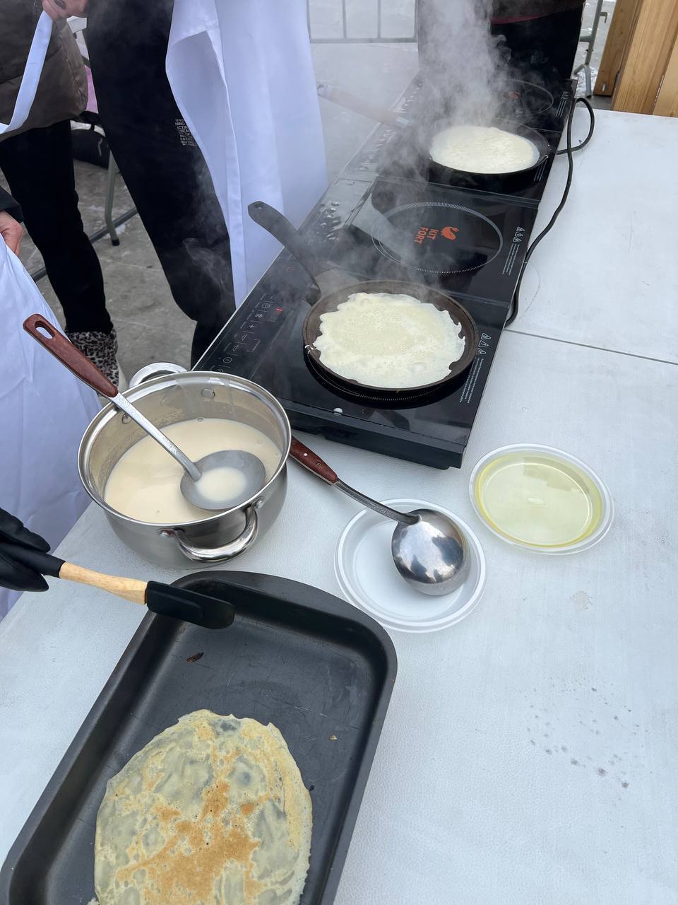 Блюда для бесплатной дегустации уже готовятся приглашенными шеф-поварами, а студенты торгово-кулинарного училища приступили к созданию авторских блинов.