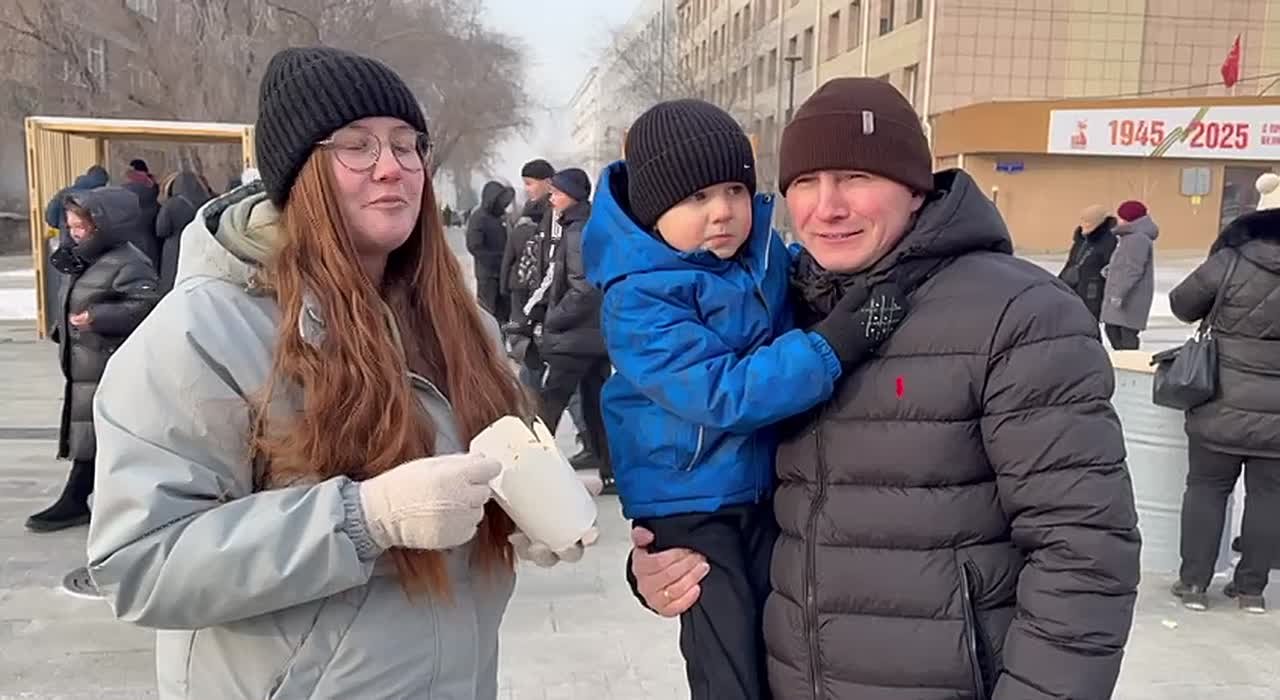 Гости из южного города приехали в Читу, вышли погулять, а тут такое веселье и кашу раздают.