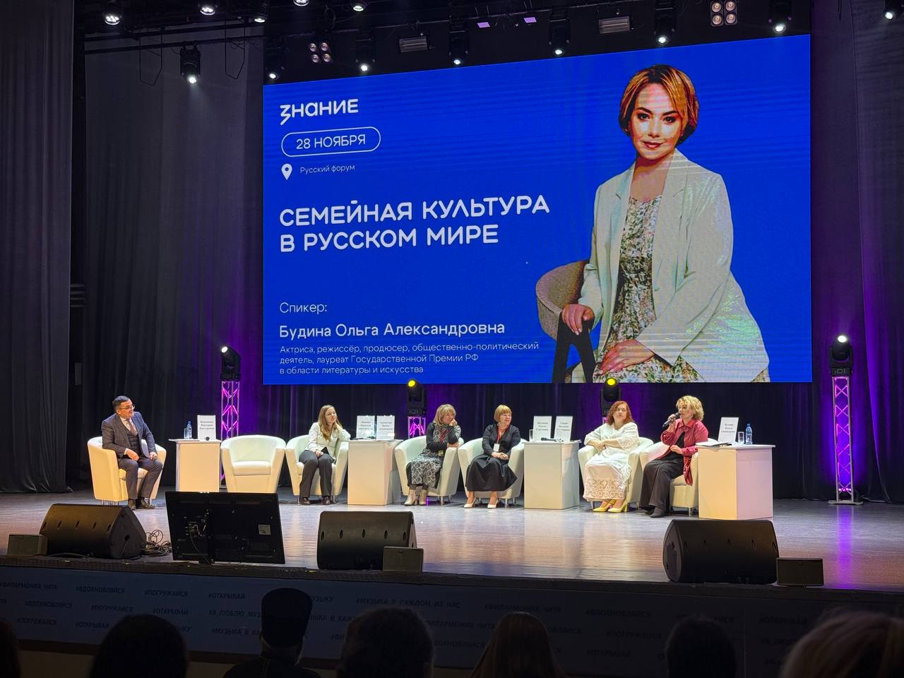27-28 ноября на площадке Забайкальской краевой филармонии имени О. Л. Лундстрема прошел Русский форум. С целью возродить интерес к истокам, традициям и ценностям русского народа на мероприятие собралась широкая общественность края. В работе второго дня форума приняла участие лектор Общества «Знание», российская актриса театра и кино, лауреат Государственной премии России Ольга Будина.