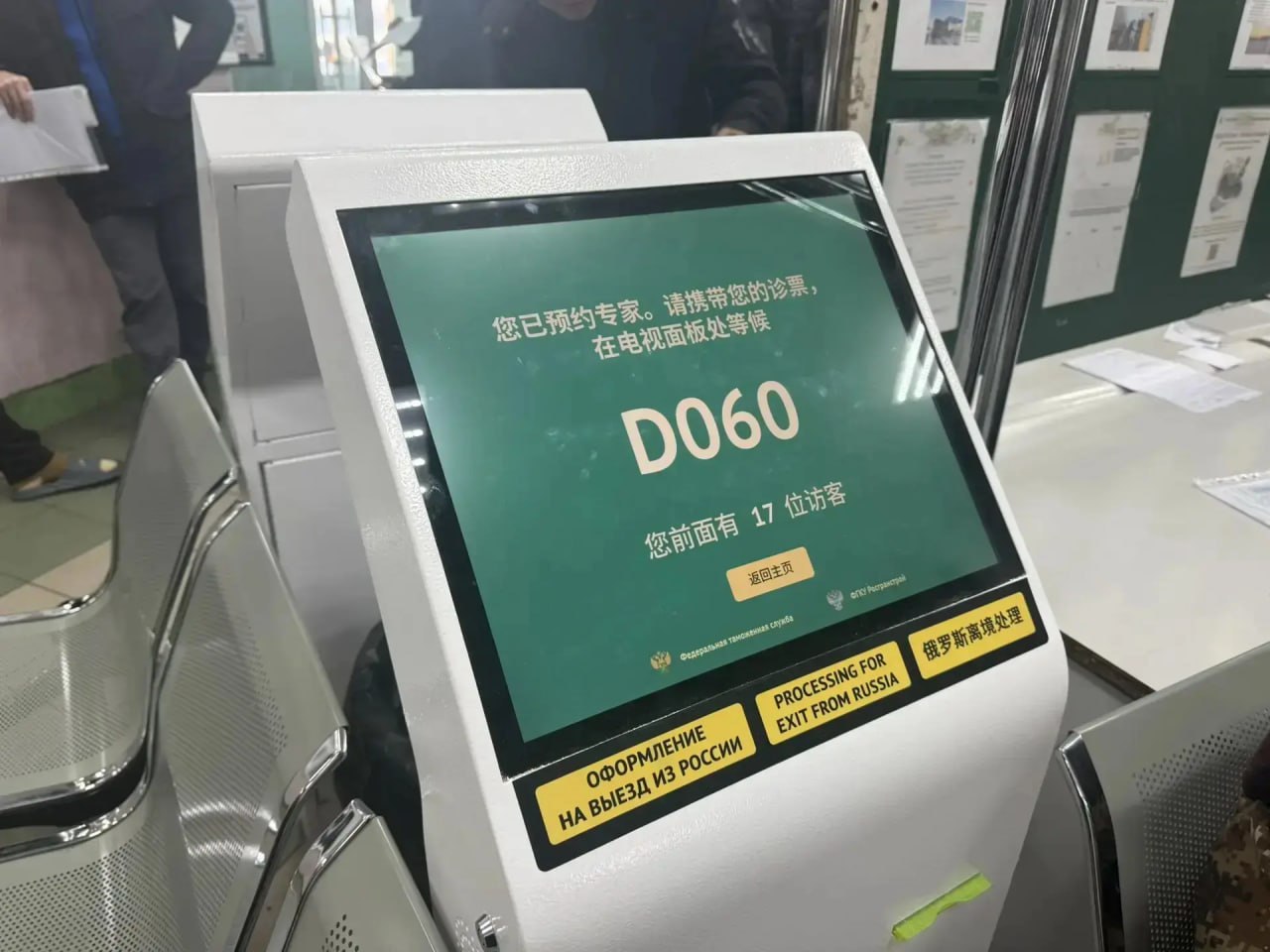 Водитель получает талон в специальном терминале, расположенном в зале таможенного оформления: для этого необходимо указать государственный регистрационный знак транспортного средства и выбрать характер провозимого груза (скоропортящиеся товары, товары промышленной группы и др.).