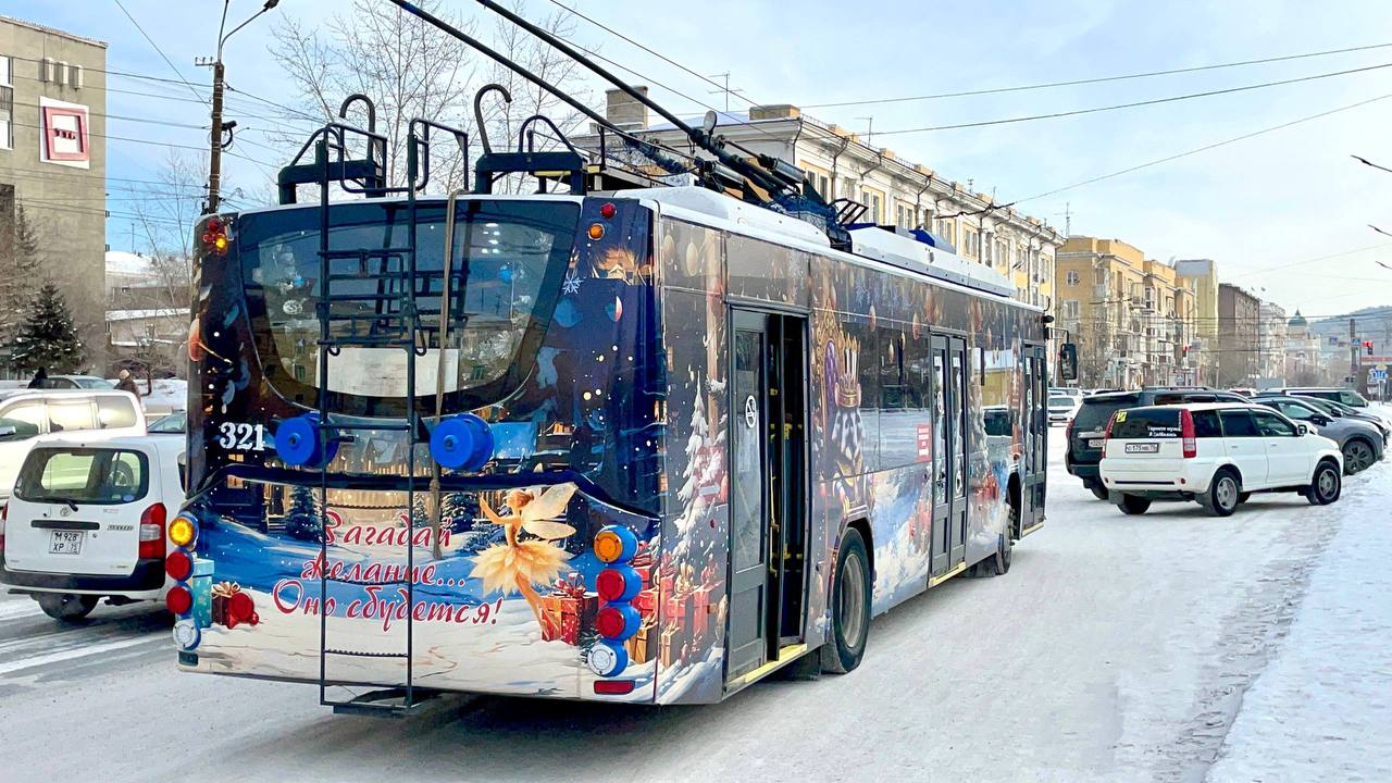 Один из городских троллейбусов Читы к новогодним праздникам украсили сюжетами из «Щелкунчика»