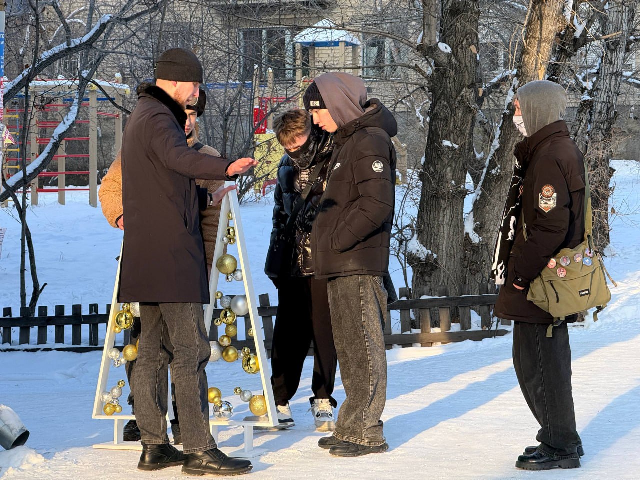 Чита преображается к Новому году: Ветеран СВО и студенты украсили клумбу на улице Журавлёва