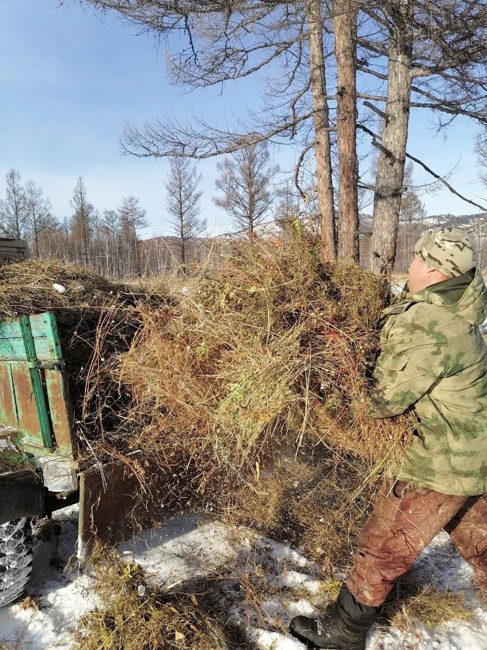 Диким обитателям заказника «Агинской степи» егеря накрыли праздничный стол — подарили зеленые березовые веники!