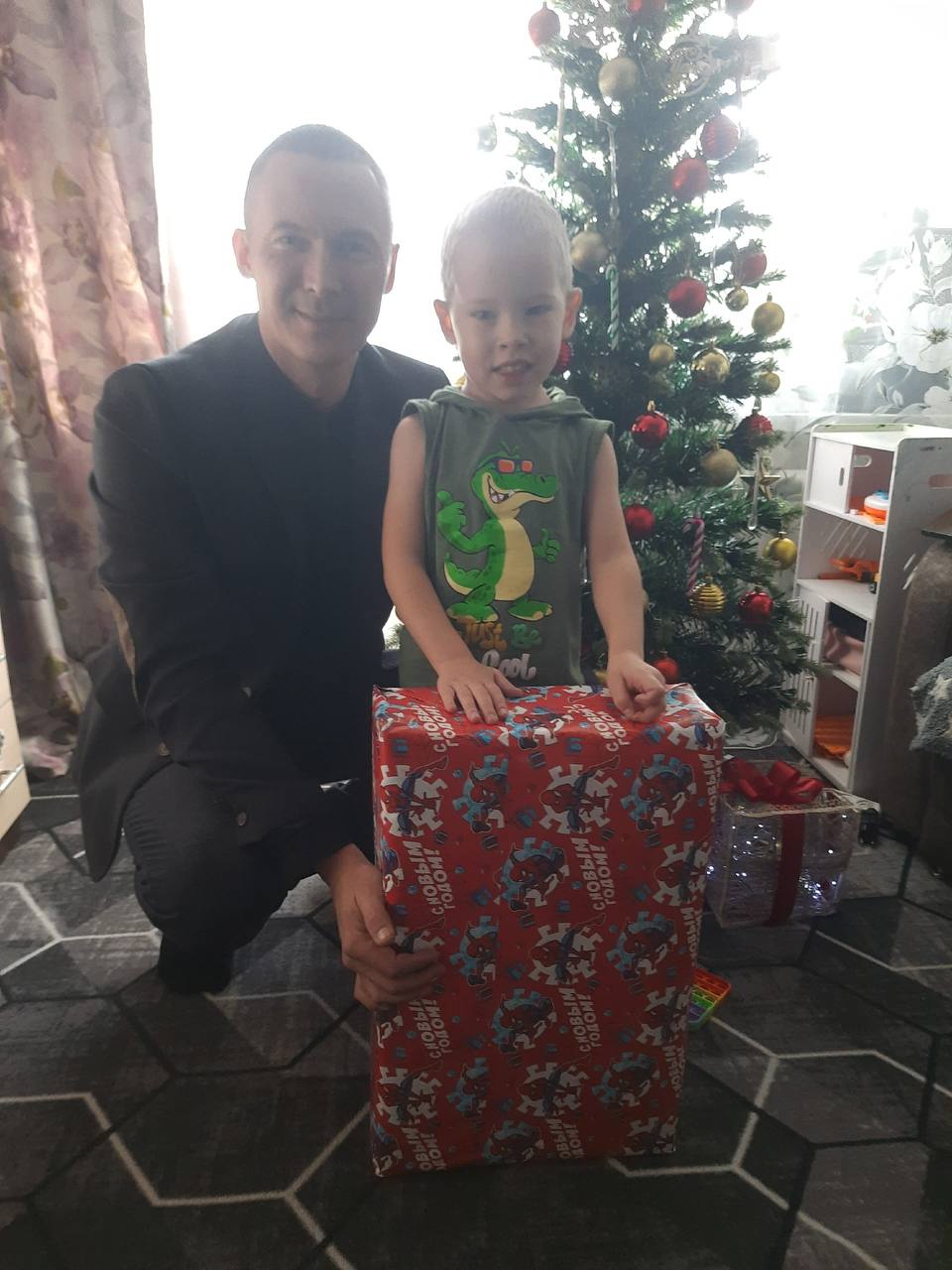 А парламентарий Игорь Кочергин с новогодней елки снял шар с желанием мальчика Пети из города Борзи, который отличается любознательностью.