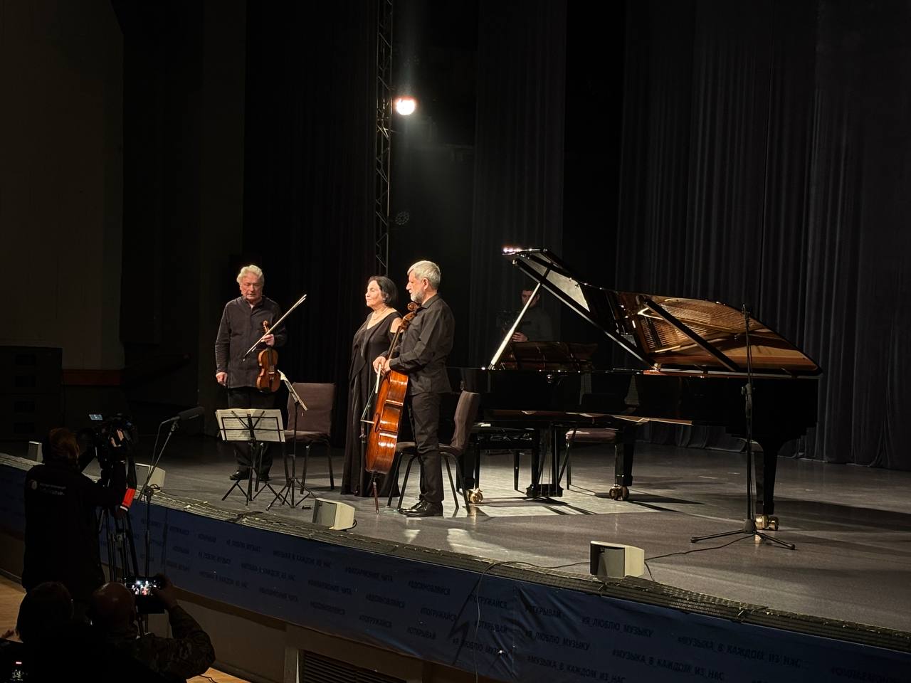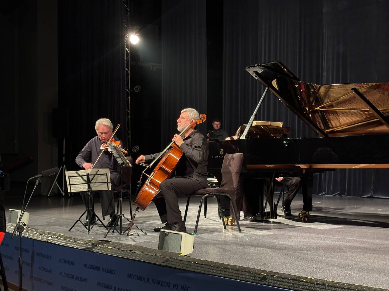 Мария Воскресенская (фортепиано), Леонид Лундстрем (скрипка) и Владимир Нор (виолончель) исполнили музыкальную программу: трио до мажор опус 87 Иоганнеса Брамса и трио Петра Чайковского «Памяти великого художника».