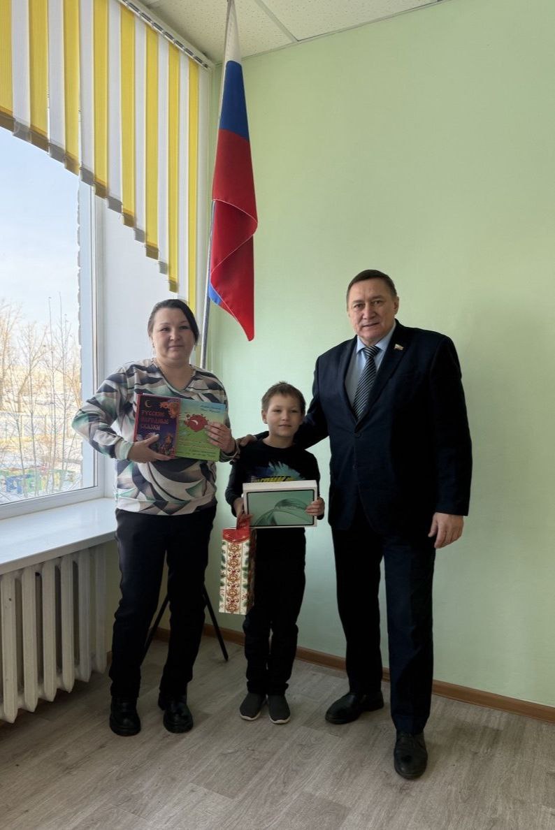 Подарил парнишке планшет, сладости, новые книги, в т.ч. авторскую. Пожелал хорошо учиться, много читать, помогать родителям. Мама Руслана - учитель физики и математики, вместе сфотографировались на добрую память, - сообщил депутат.