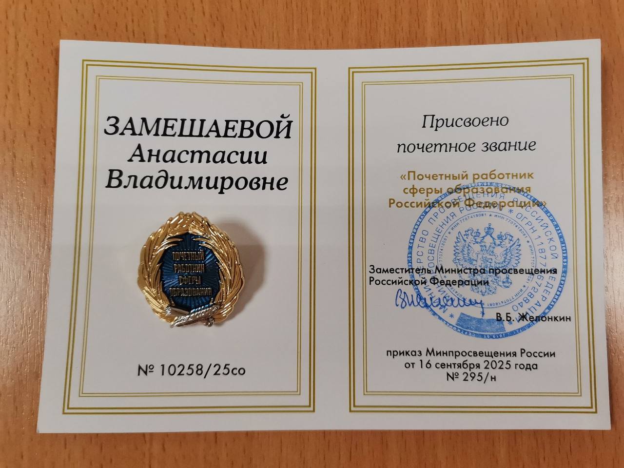 Учительнице из Забайкалья присвоено звание «Почетный работник сферы образования РФ»