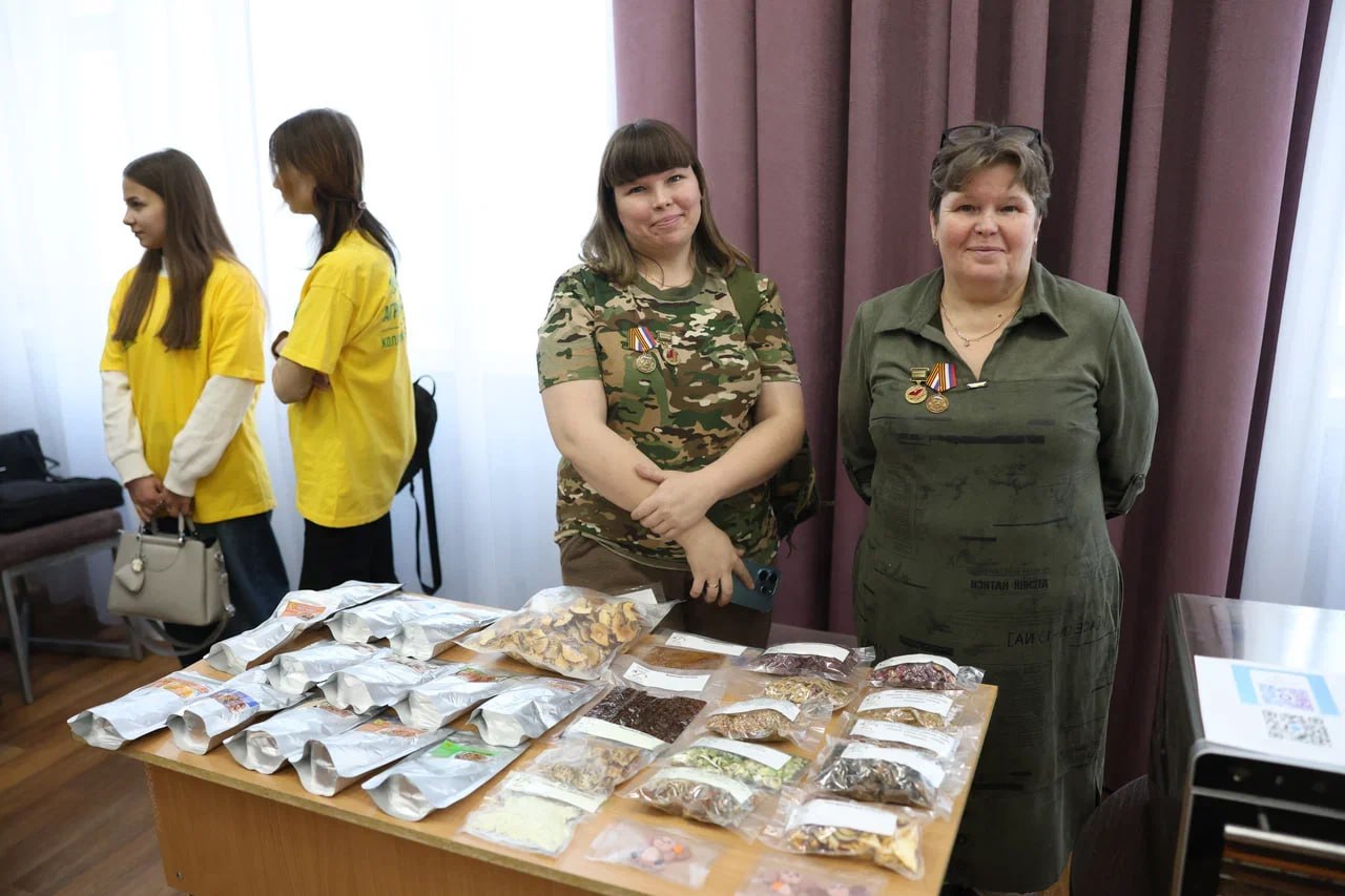 Сухофрукты для компота, фруктовые фрипсы и пастила, разнообразные сухие супы – всё это изготавливают волонтёры. На выставке представили образцы самых популярных супов в зоне СВО – борща, солянки, горохового. Волонтеры обмениваются рецептами, тут же демонстрируют специальный аппарат – дегидратор, с помощью которого и готовятся ингредиенты для сухих блюд.