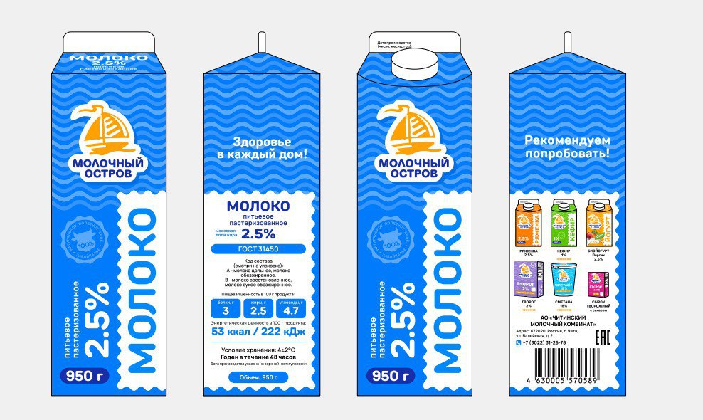 Упаковка всей линейки продукции стала современнее и ярче, но главное- была сохранена узнаваемость бренда. Знакомый всем с детства кораблик, символ торговой марки «Молочный остров», остался на своём месте, получив лишь свежее прочтение.