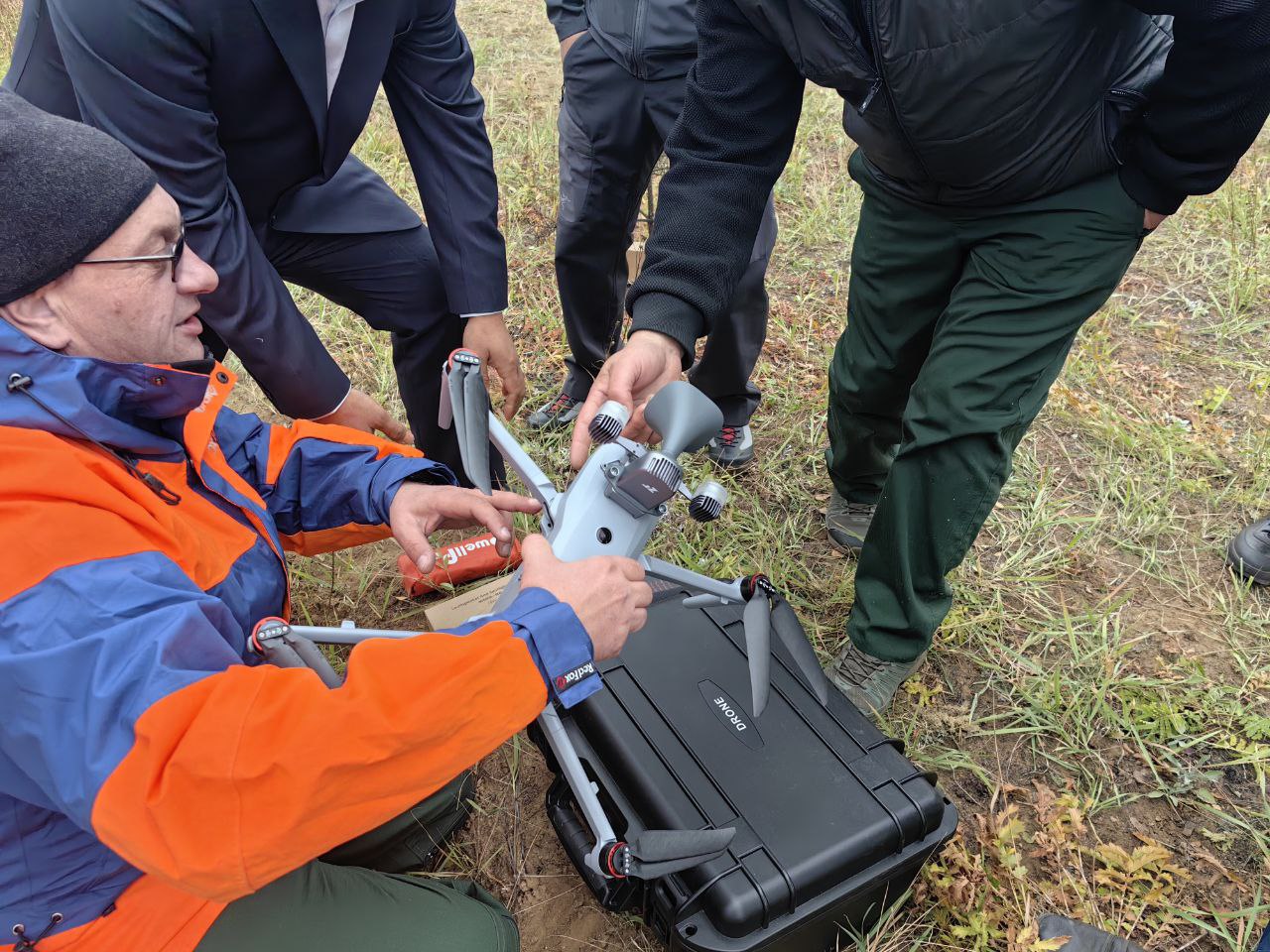 На учениях Лесоохраны по пилотированию дронов представитель китайской компании презентовал два дрона: