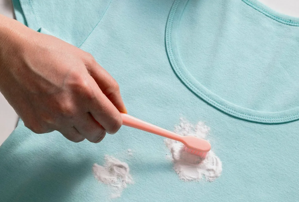 - Смесь перекиси водорода и соды поможет избавиться от органических пятен, таких как вино или трава.