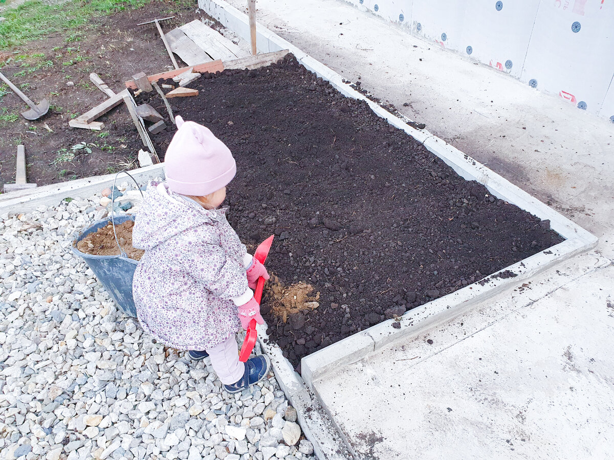 Вдохновленный работой коллег, которые предложили поделиться цветами для весеннего цветника, сосед решил сделать небольшую клумбу. Участок ограничен парковкой и отмосткой, поэтому было решено обустроить мини-клумбу прямо у входа. Для этого использовались чернозём и оставшиеся стройматериалы. В итоге грядка была поднята до уровня бордюров, что позволило создать визуально привлекательное пространство.