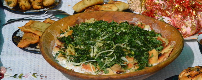 Зимой рекомендуется использовать репчатый лук в виде замены зеленого, добавив размоченный курт и немного масла, чтобы создать более насыщенный вариант блюда.