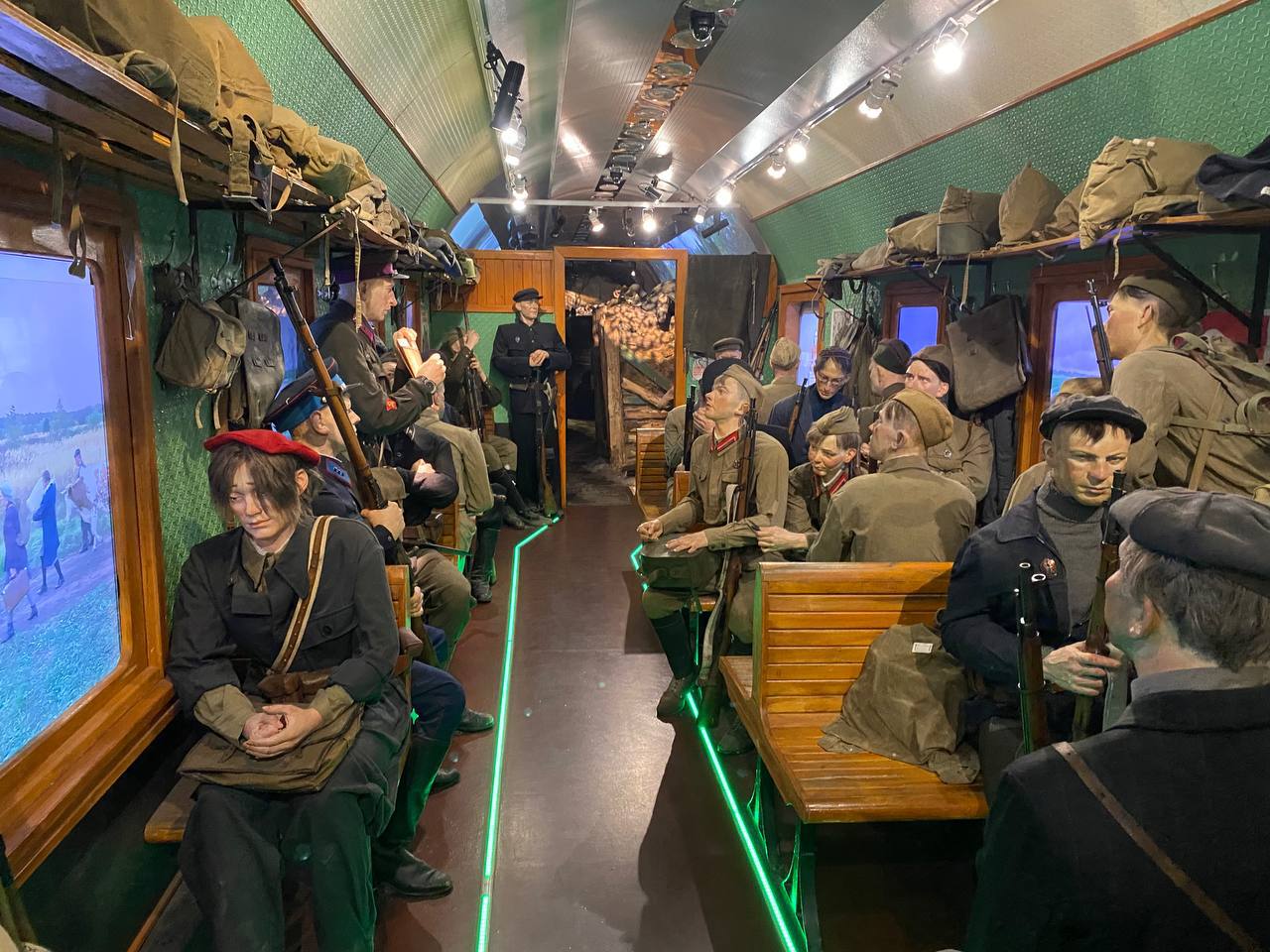 «Поезд Победы» — это первый в мире иммерсивный музей в движущемся составе. В 10 вагонах развернута полномасштабная историческая экспозиция, посвященная разным этапам и событиям войны.