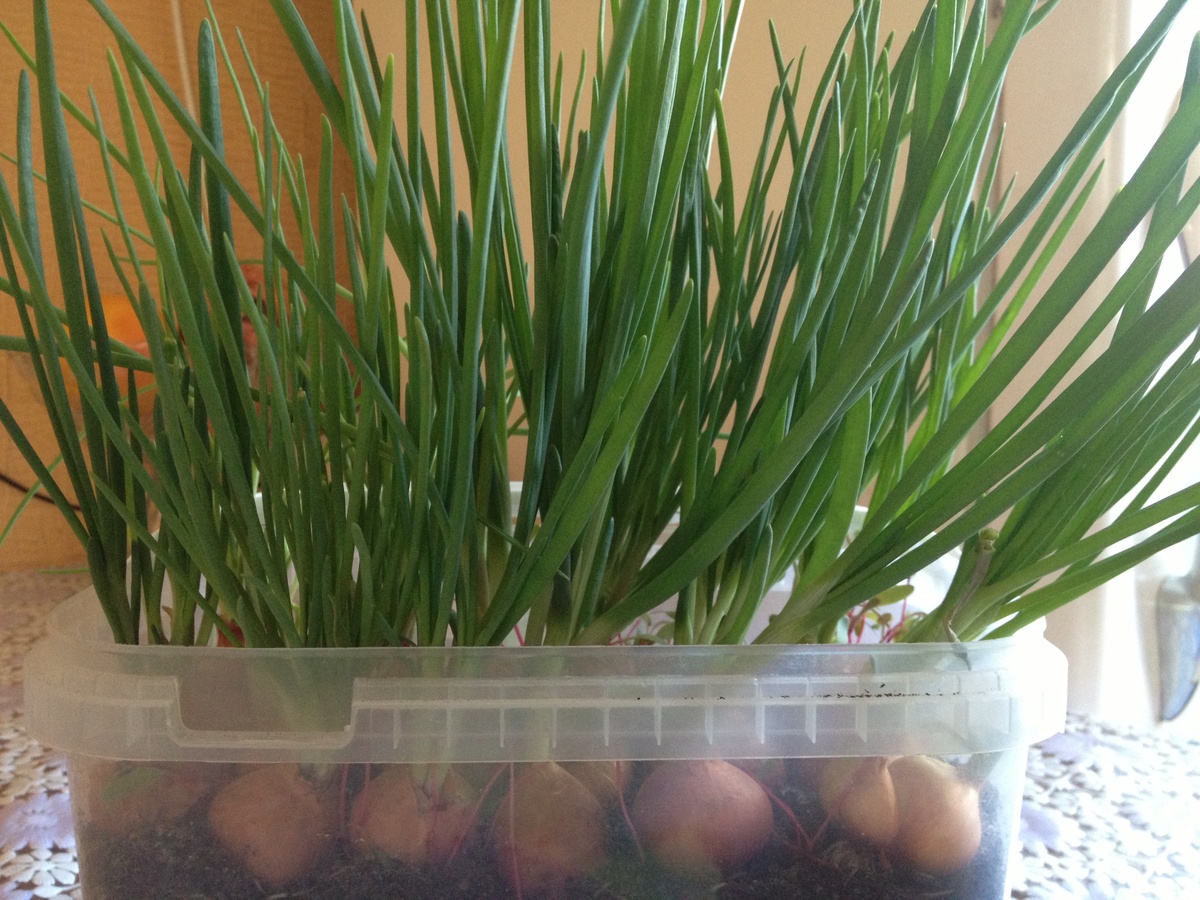 Лук — одна из самых невзыскательных культур для домашнего выращивания. Он может расти на зелень в простых пластиковых контейнерах или даже в воде. Всё, что нужно, — это поддерживать уровень влаги для корней. В идеале подходят небольшие луковицы диаметром 3-4 см, которые легко прорастают. Чтобы обеспечить постоянное наличие свежей зелени, лук можно высаживать каждые семь дней.
