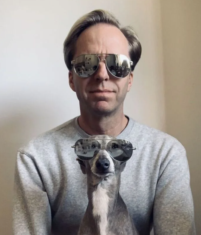 - Собака и хозяйка с одним стилем: На одном снимке можно увидеть пару, состоящую из собачки и её владелицы, обе обладающие стройными фигурами и серьезными выражениями лиц. Их общий стиль также подчеркивается солнцезащитными очками с зеркальной поверхностью, а цветовая гамма образа гармонично перекликалась: у собачки серый окрас, у хозяйки — серый свитер.