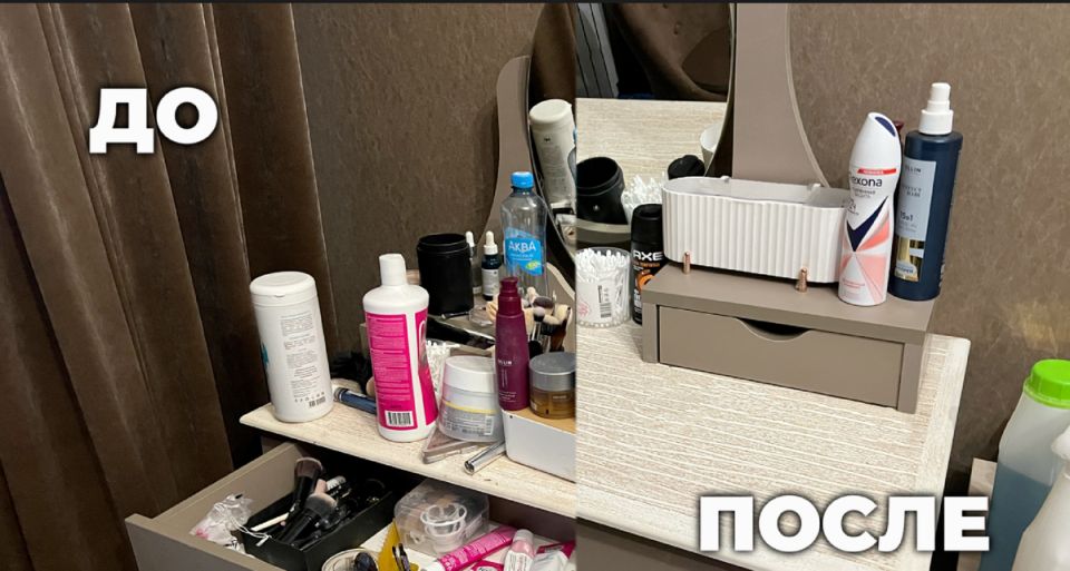 Начать следует с освобождения столика – убрав все косметические средства и аксессуары. Это позволит вам переосмыслить, что из этого действительно необходимо. Важно быть честным с собой: если вы не использовали какой-либо продукт больше полугода, скорее всего, он вам не нужен.