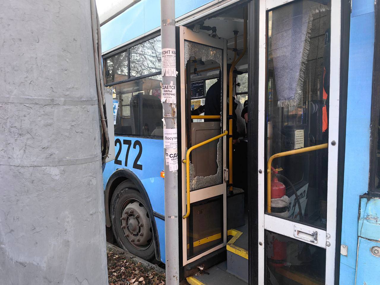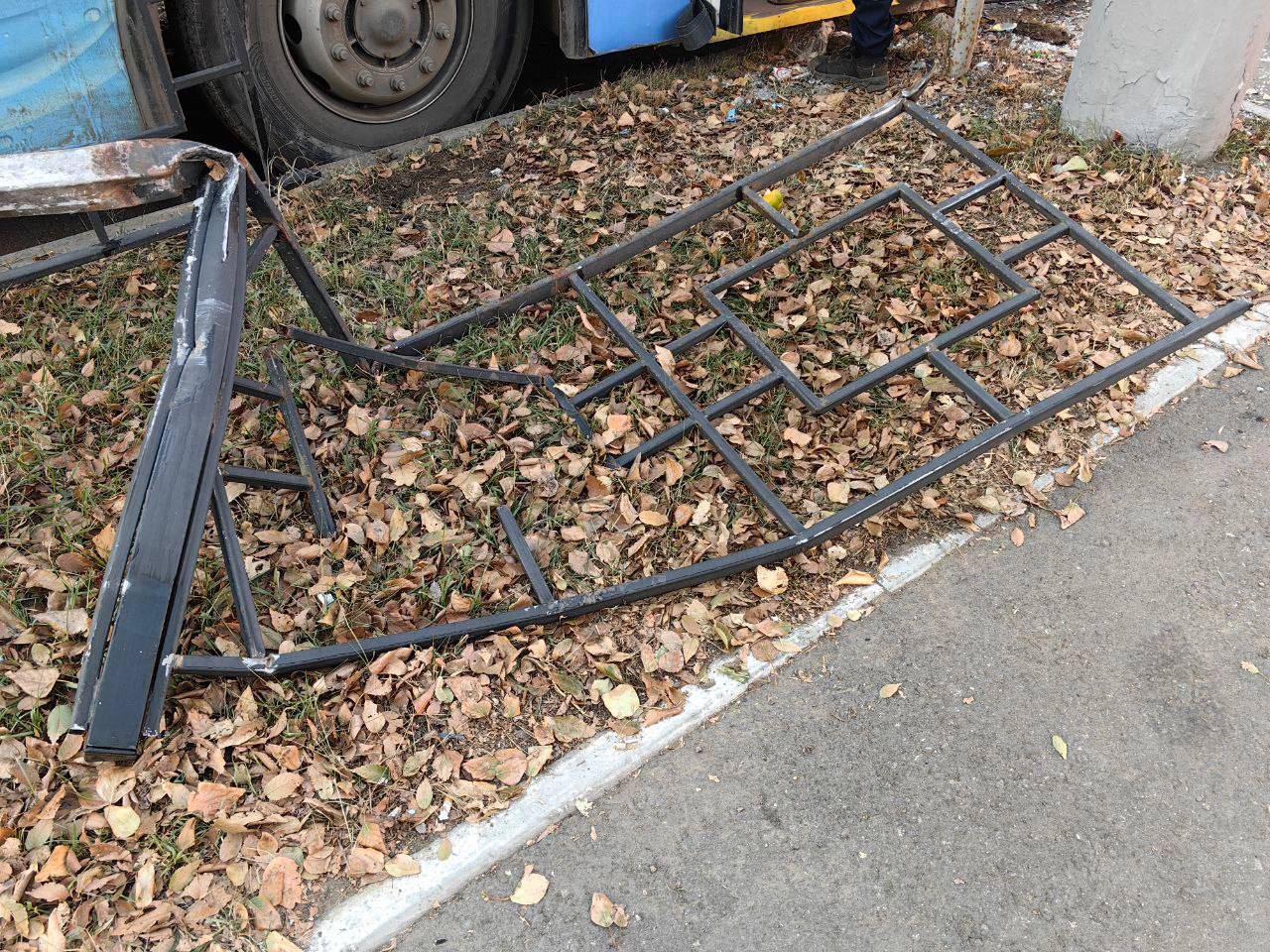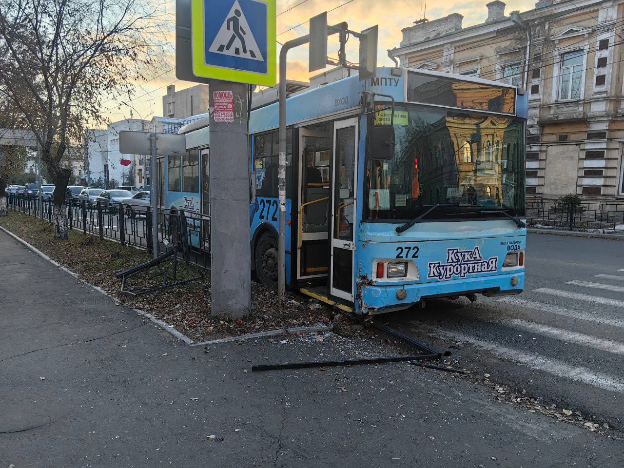 Троллейбус снес ограждение на перекрестке улиц Бутина-Чкалова.