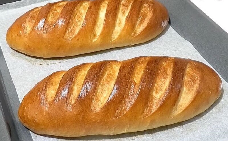 Подготовленные батоны укладываются на противень, застеленный пергаментом, и накрываются полотенцем на 30 минут. После этого делают на поверхности надрезы, снова накрывают и оставляют еще на 20 минут. Яйцо взбивается с двумя столовыми ложками воды и небольшой щепоткой соли. Затем смазывают поверхность батонов, стараясь не нарушить поднявшееся тесто.
