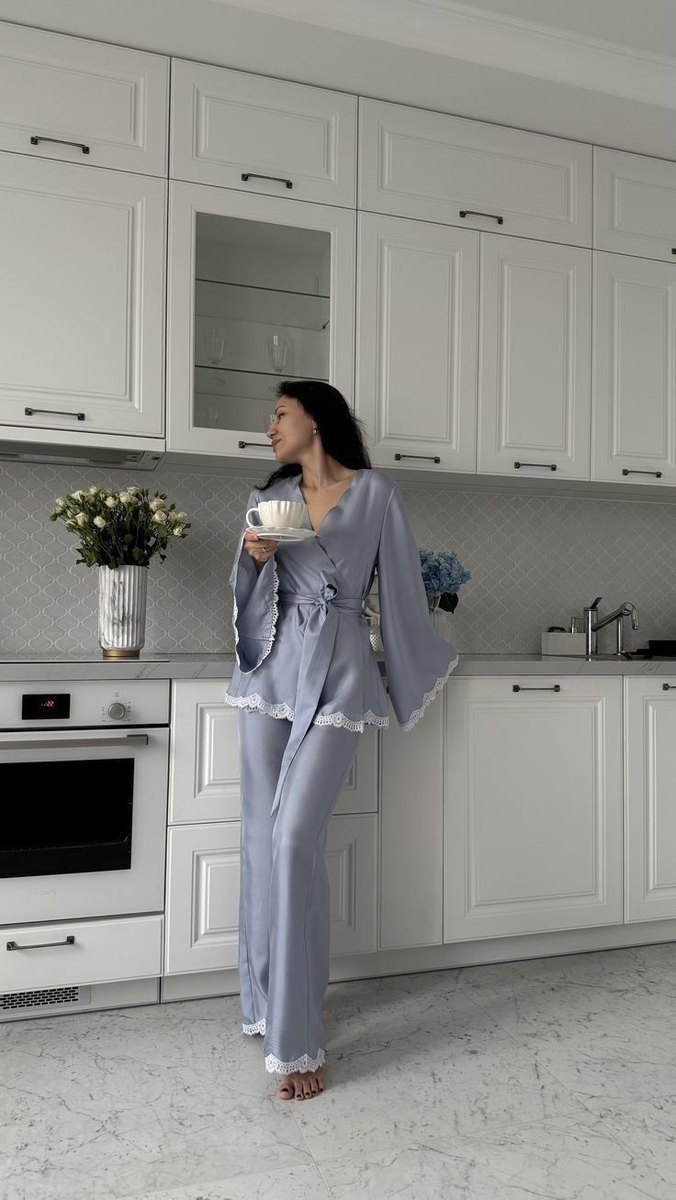 - Уютная леди: Хлопковая или льняная пижама пастельных оттенков в сочетании с мягким кардиганом создаёт комфортный, но привлекательный вид. Добавление небольшого аксессуара, такого как тонкий ободок или аккуратный хвост, сделает образ завершённым.