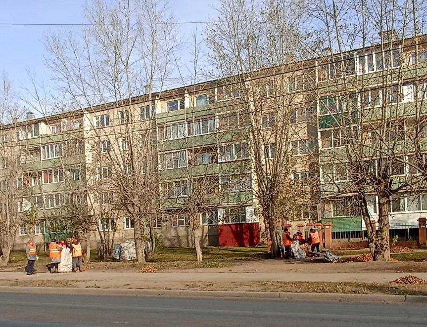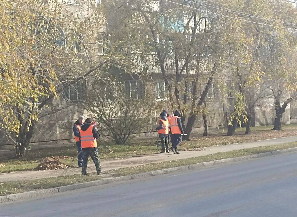 На фото - уборка территории работниками УК «Прогресс».