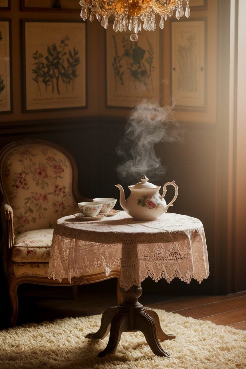 - Изящные сервизы: Красивый чайный сервиз поднимет настроение. Не обязательно обновлять коллекцию каждый сезон, достаточно просто достать то, что давно пылится в шкафу.