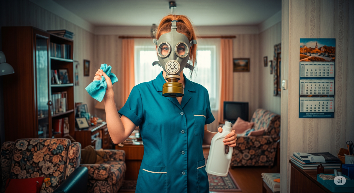 Мытье всех поверхностей хлоркой стало классическим подходом к домашней гигиене в 90-х благодаря дефициту более безопасных средств.